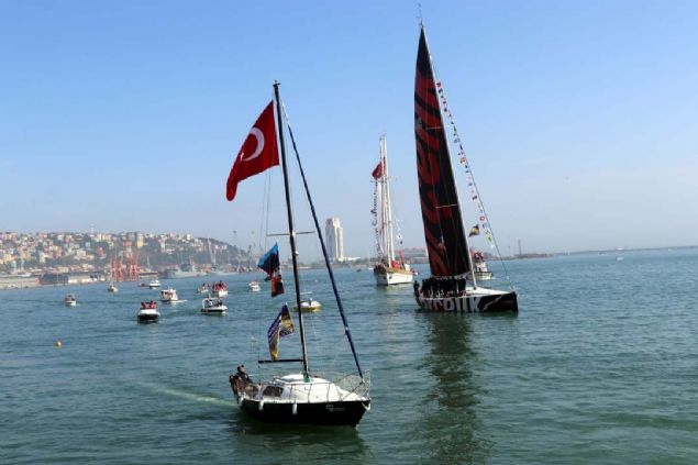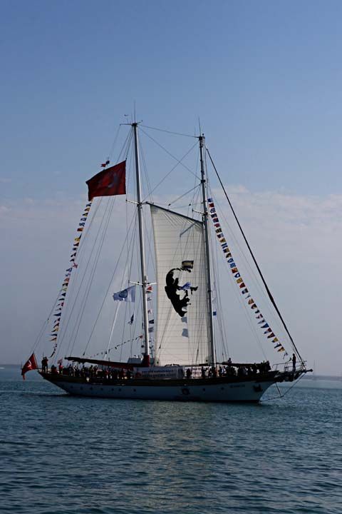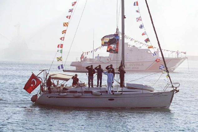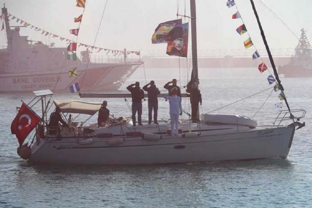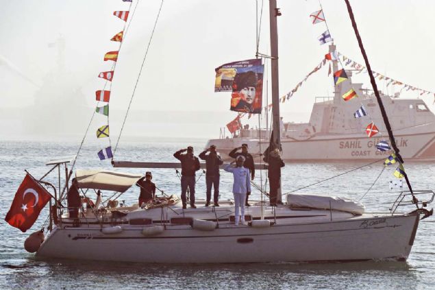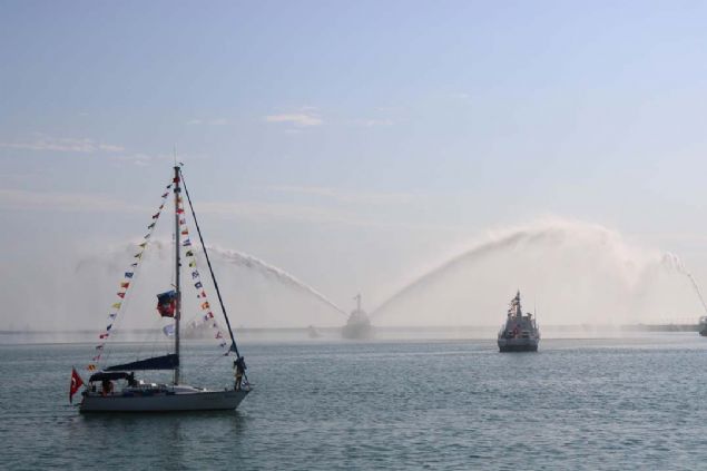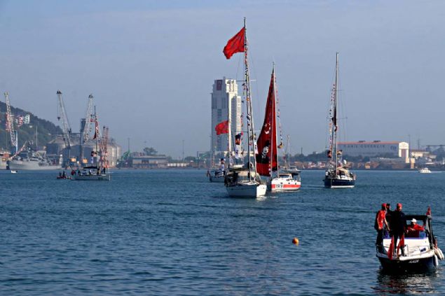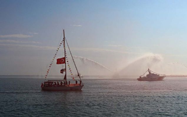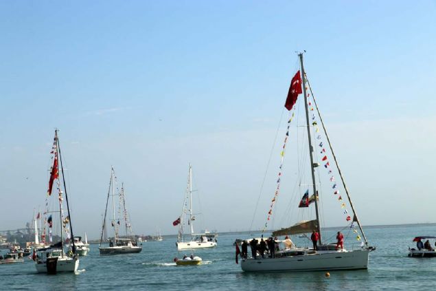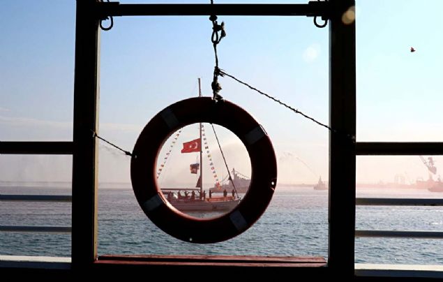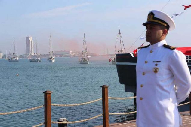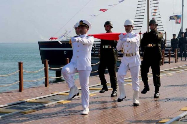 Kutlamalarda Atatürk ve silah arkadaşlarını temsilen Tütün İskelesi'nden karaya Türk bayrağı çıkarıldı.