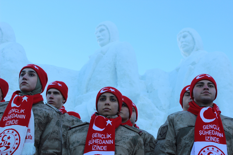 Sarıkamış Harekatı'nın 109. yılında şehitlerin anısına yapılan kardan heykeller açıldı