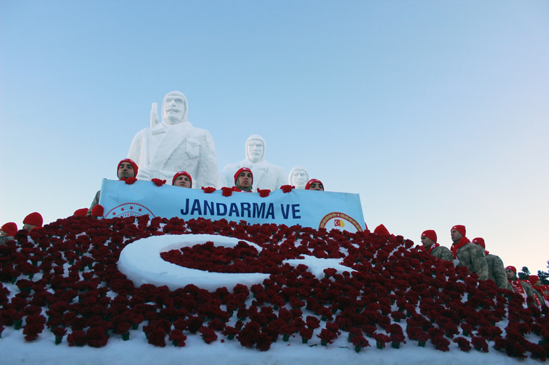 Sarıkamış Harekatı'nın 109. yılı anma etkinlikleri kapsamında Kars'ın Sarıkamış ilçesinde şehitler anısına yapılan kardan heykellerin açılışı gerçekleştirildi.