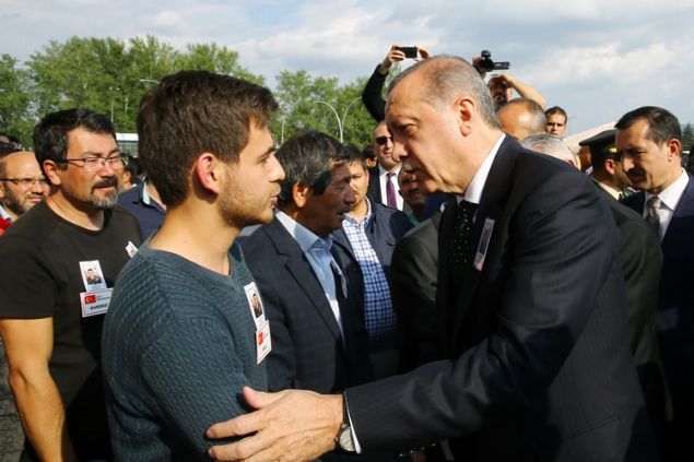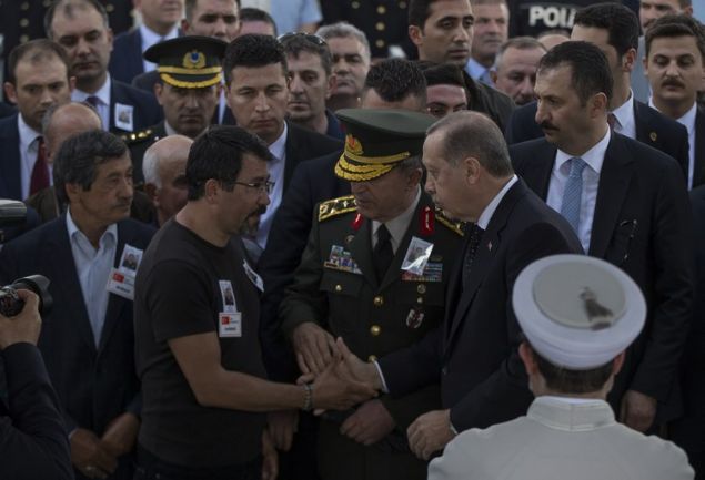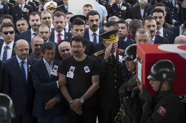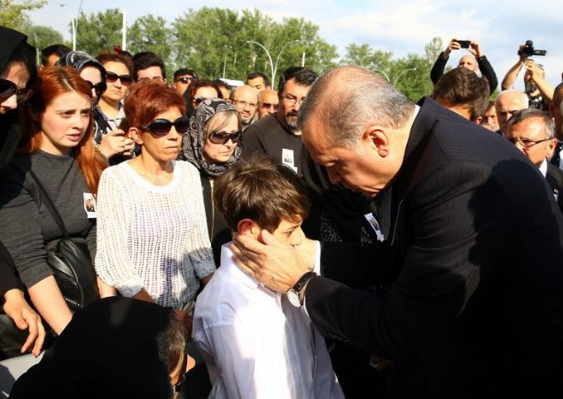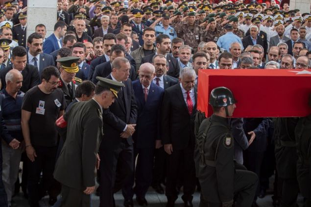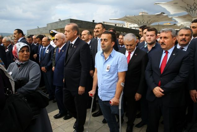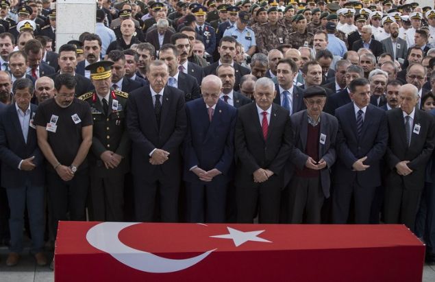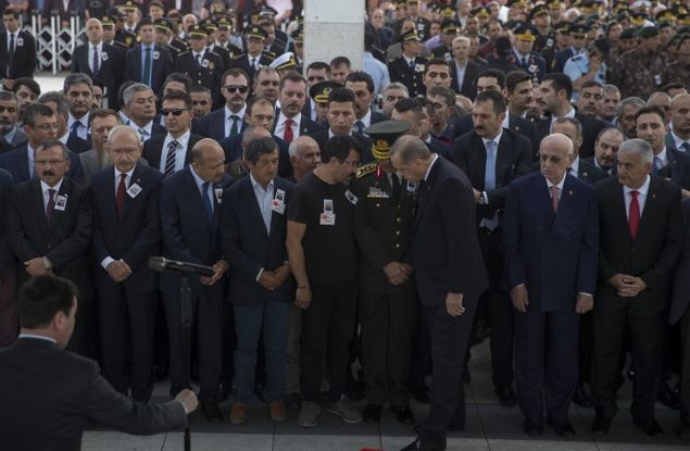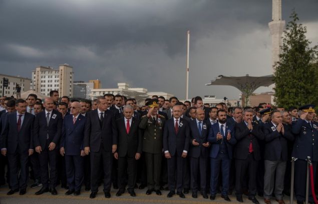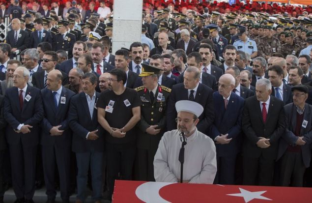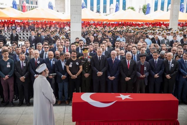 Tümgeneral Aydoğan Aydın için Ahmet Hamdi Akseki Camisi'nde ikindi namazına müteakip düzenlenen törene, şehidin babası Ahmet Aydın, annesi Hamide Çolak, eşi Nuray Aydın, oğulları 20 yaşındaki Berkay ile 11 yaşındaki Tuna'nın yanı sıra Cumhurbaşkanı Recep Tayyip Erdoğan, TBMM Başkanı İsmail Kahraman, Başbakan Binali Yıldırım, Genelkurmay Başkanı Orgeneral Hulusi Akar, CHP Genel Başkanı Kemal Kılıçdaroğlu, İçişleri Bakanı Süleyman Soylu, Milli Savunma Bakanı Fikri Işık, MHP Genel Başkanı Devlet Bahçeli, BBP Genel Başkanı Mustafa Destici, bazı bakanlar, milletvekilleri ve çok sayıda vatandaş katıldı.