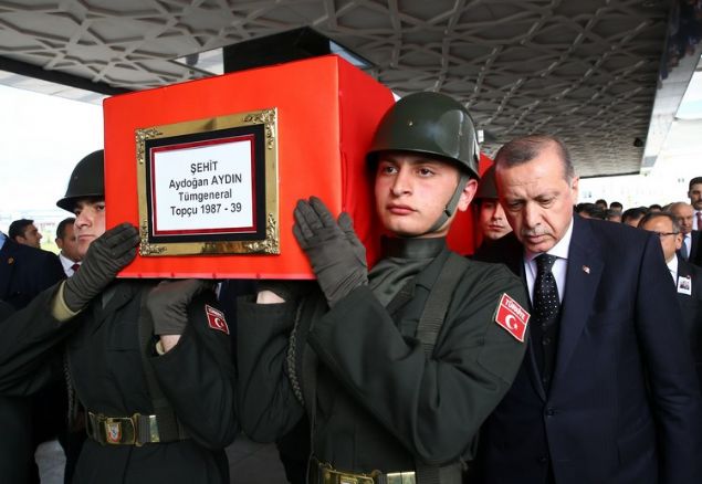 Şırnak'taki helikopter kazasında şehit olan 23. Jandarma Sınır Tümen Komutanı Tümgeneral Aydoğan Aydın için Ahmet Hamdi Akseki Camisi'nde ikindi namazına müteakip düzenlenen cenaze töreninin ardından şehidin cenazesi, Cebeci Askeri Şehitliği'ne getirildi.