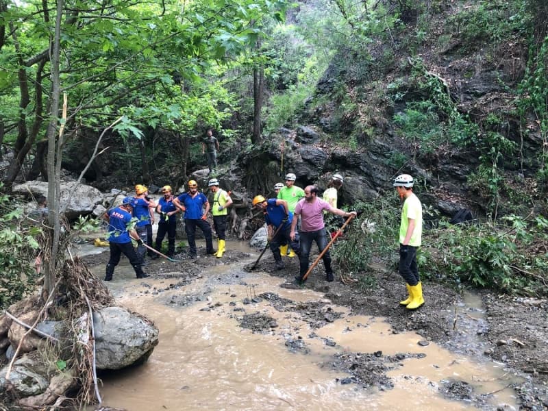 İHH Saha Koordinatörü Erdal Altıntaş, 'Dün dalgıçlarımız su birikintisinde arama çalışması yaptı. Bugün ise o suyu boşaltıyoruz. Su pompaları gelerek, suyu boşaltacak. Daha sonra iş makineleri orada kazı yapacak. Bugün hassas aramalar yapılıyor. Kum yığıntıları karıştırılıyor. Dere yatağının içerisinde aramalar devam ediyor. Su altı ekipleri kanyonu bir kez daha tarayacak. Diğer cesetlerin bulunduğu yerde Derya’nın bulunma ihtimali daha fazla. Bu bölgeden sonra kanyonlar başlıyor. Kanyona defalarca ekiplerimiz baktı ama Derya’ya ulaşamadık. Bu yüzden hassas arama var ve bu noktada kadavra köpekleri çok önemli bir yer bulunuyor. Kadavra köpekleri alanı devamlı tarıyorlar. Herhangi bir koku duydukları anda ekiplerimiz de orayı kazıyor” dedi.