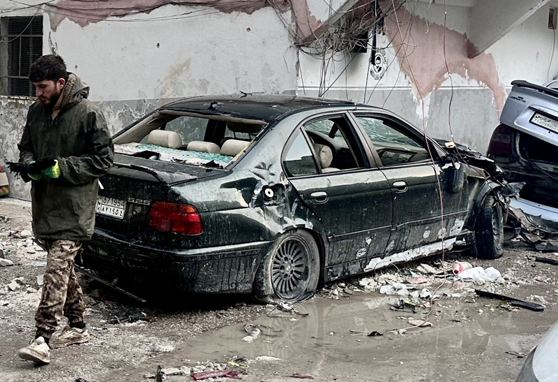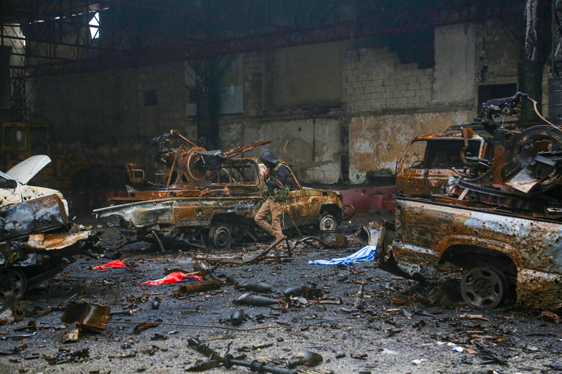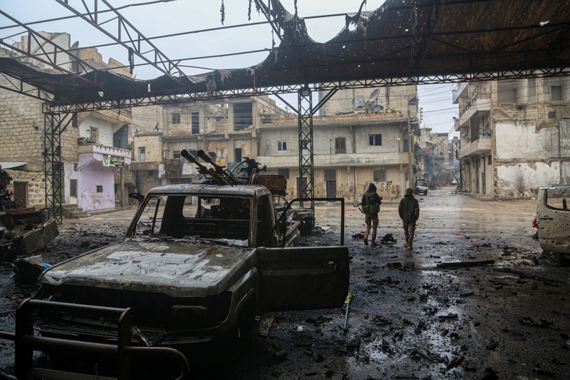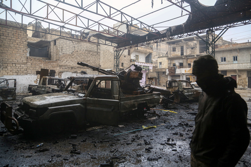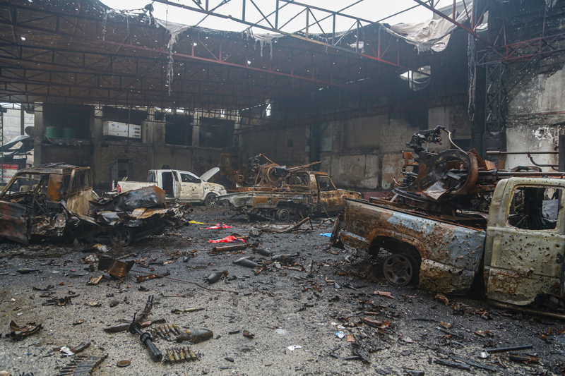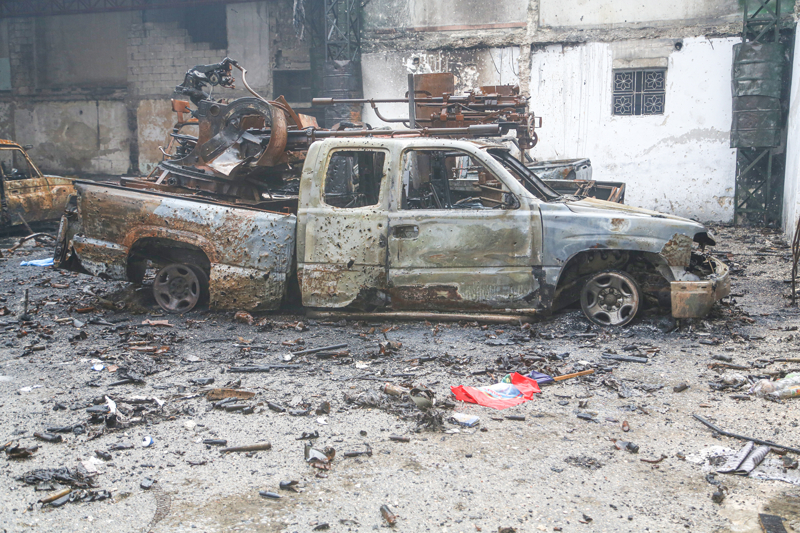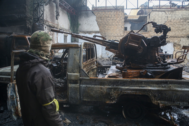 Suriye'nin Halep kentinin Şeyh Maksud Mahallesi'nde, Suriye ordusu ile çatışan terör örgütü YPG/SDG'ye ait yanan askeri araçlar görüntülendi.