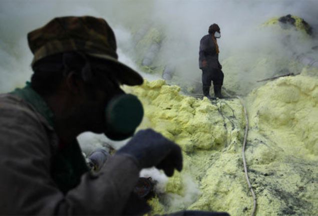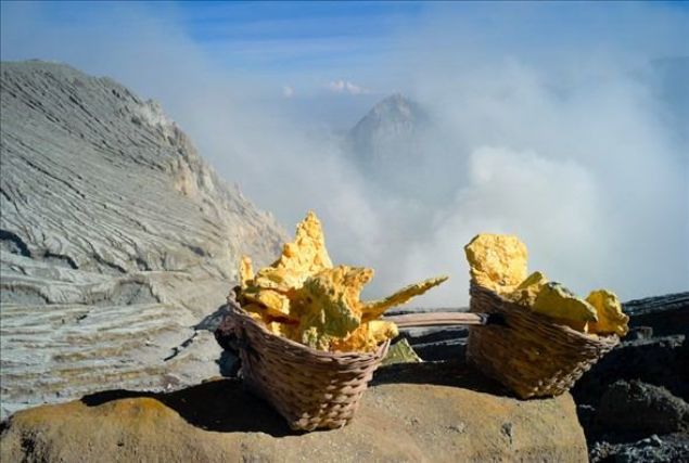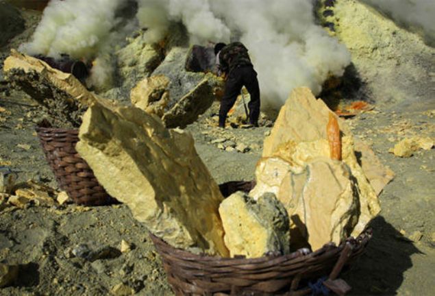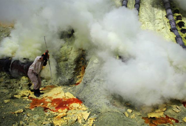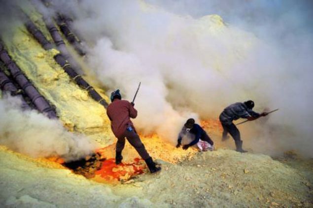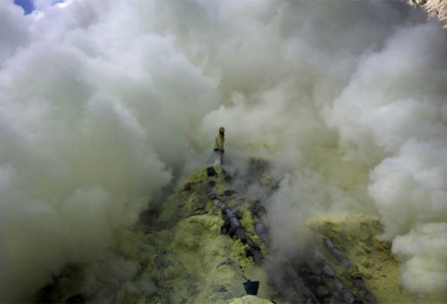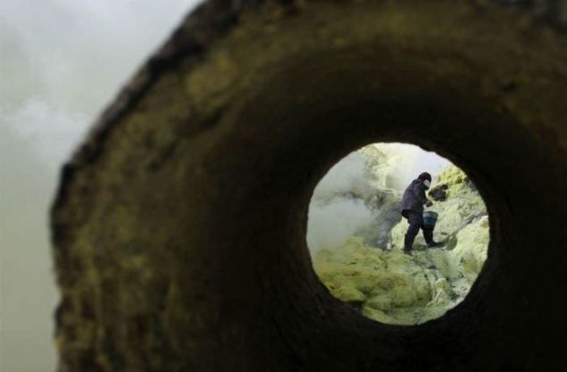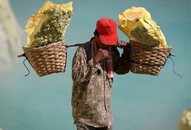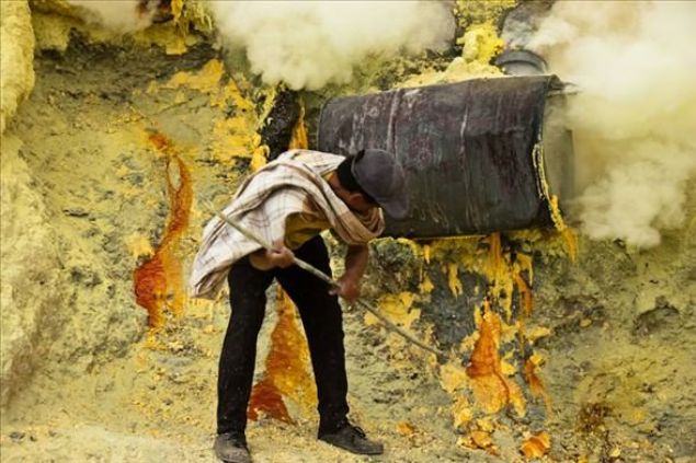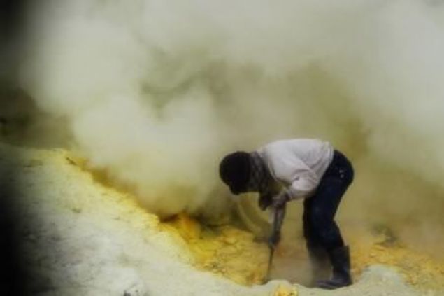 İtalyan foto muhabiri Luca Catalano Gonzaga, 2014'te Endonezya'ya giderek Doğu Java'daki Kawah Ijen yanardağının kendi ifadesiyle 'rahminde' on gün geçirdi. Burada ağır koşullar altında çalışan madenciler kraterin derinliklerinden kükürt çıkarıyor ve bu süreçte kendi bedenlerini yaralıyor.