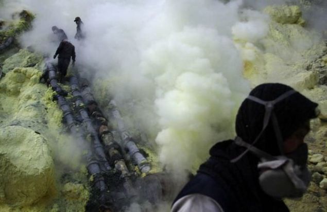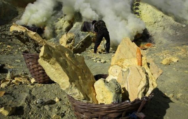 'Şeytan altını' adını verdikleri kükürt arayışı içindeki 300 madenci, her gün 3,5 kilometre yol kat ederek dağa tırmanıyor, sonra da kükürt kristallerinin oluştuğu yanardağın içine doğru 800 metre iniyor. Çoğu hiçbir korunma olmadan karanlıkta ve boğucu sıcakta çalışıyor, ciğerlerini yakan ve gözlerinden sel gibi gözyaşı akmasına neden olan kükürtlü gaz soluyor.