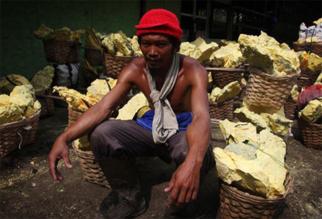 Yaralı sırt, deforme olmuş belkemiği ve yamuk bacaklar madenciler arasında yaygın. Madencilerin çoğu, kükürdü yanardağın kraterinden merkez kampa taşıdıkları fiziksel açıdan yorucu çaba sırasında dinlenmeye ve yeniden güç kazanmaya pek zaman ayırmıyor.