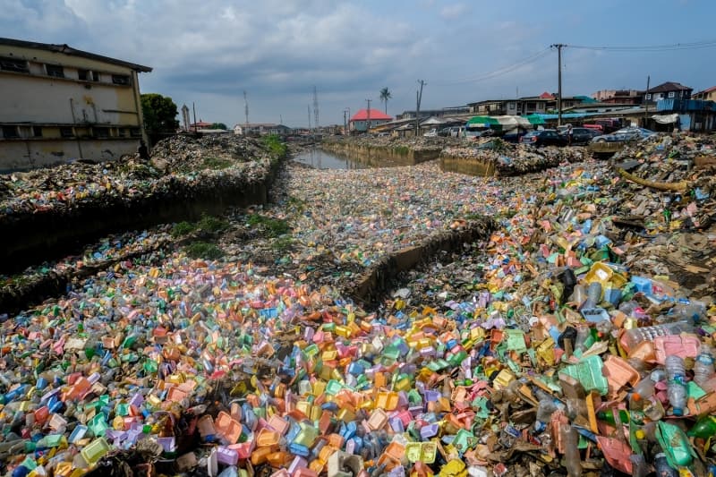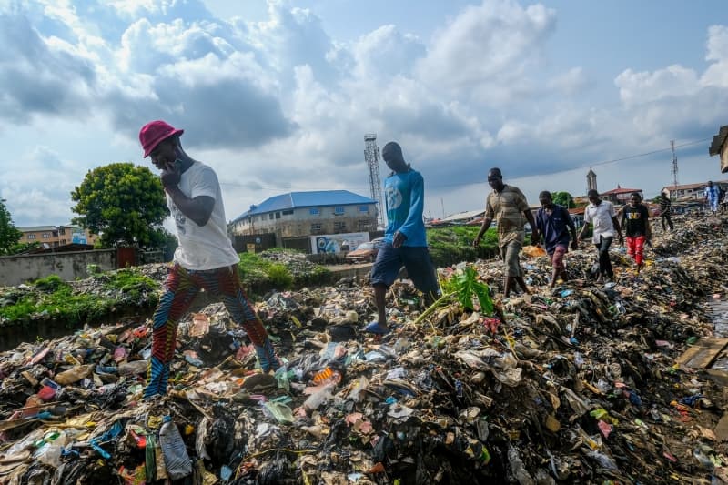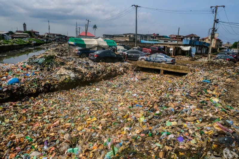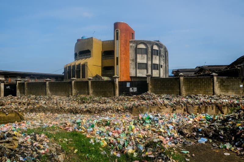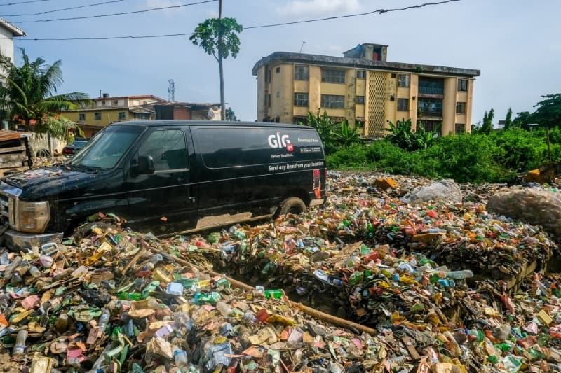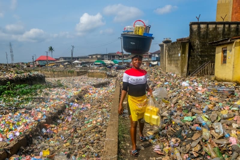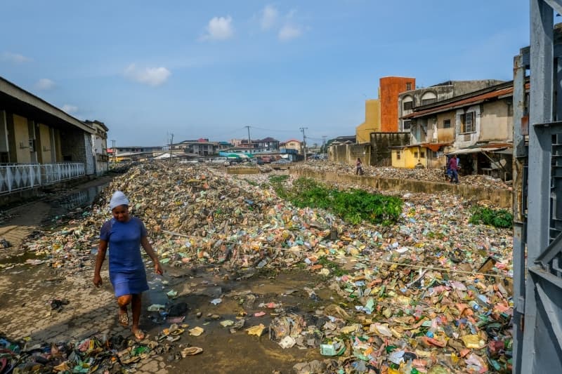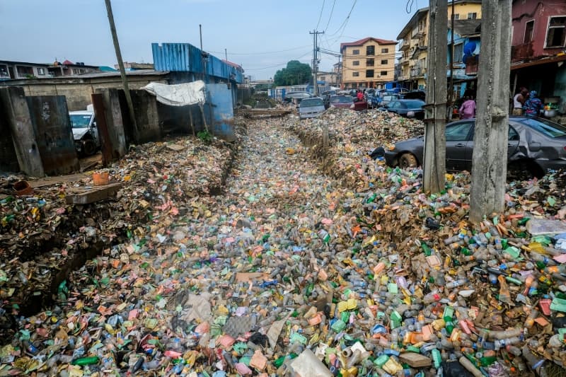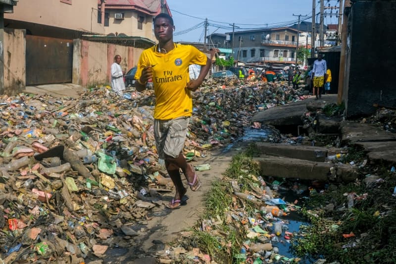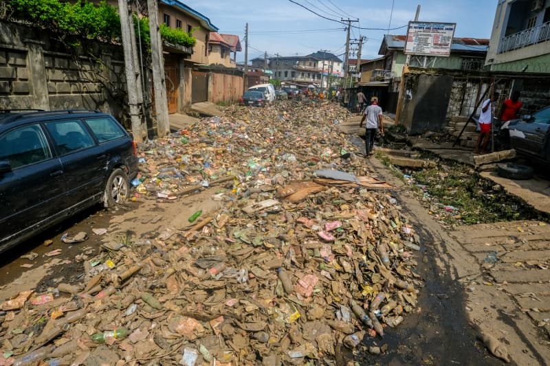 Nigerya'nın Lagos kentinde etkili olan şiddetli yağış, Idi Oro bölgesindeki atıkların sokaklara sürüklenmesine neden oldu.
