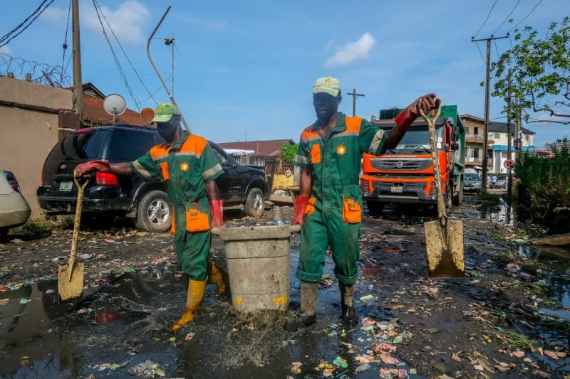 Lagos Atıkları Toplama Heyeti çalışanları, bölgede biriken çöpleri kaldırmak için hummalı bir çalışma başlattı.