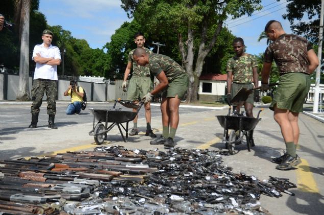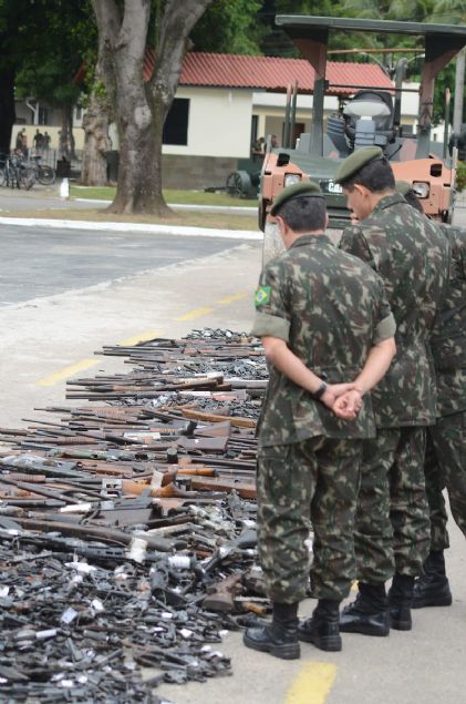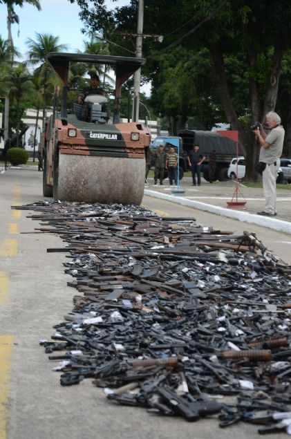 Brezilya'nın Rio de Janeiro kentinde çetelerden ele geçirilen 4 bine yakın silah üzerinden silindir geçirilerek imha edildi.