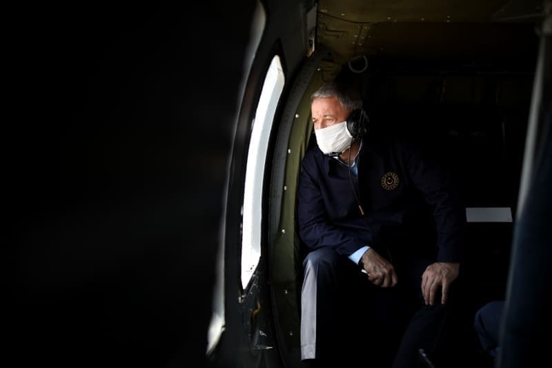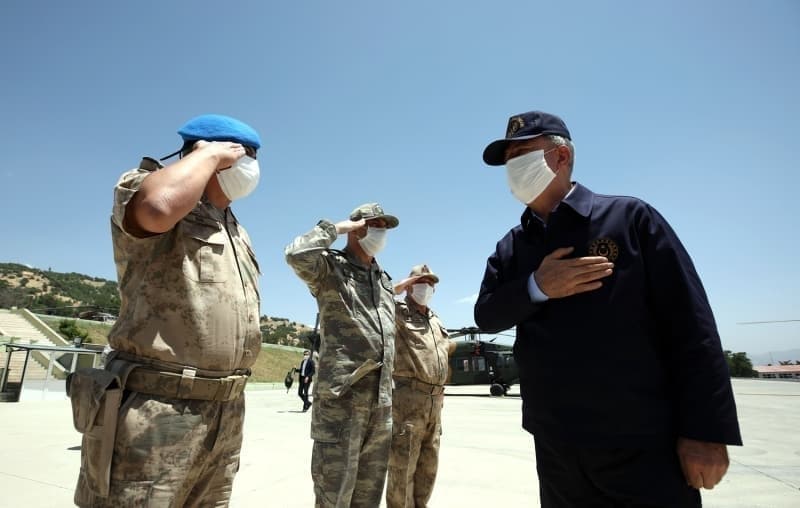 Buradan askeri helikopterlerle 23. Piyade Tümen Komutanlığına geçen Akar ve komutanlar, sınır hattındaki birliklerin komutanları ile toplantı yaptı.