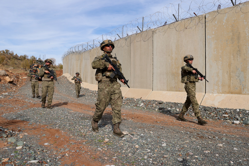 Farklı noktalarına 7 metre derinliğinde ve 7 metre genişliğinde yaklaşık 10 kilometre hendek kazılan bölgede görevli askerler, teknolojinin tüm imkanlarını kullanarak sınırı kontrol altında tutuyor.
