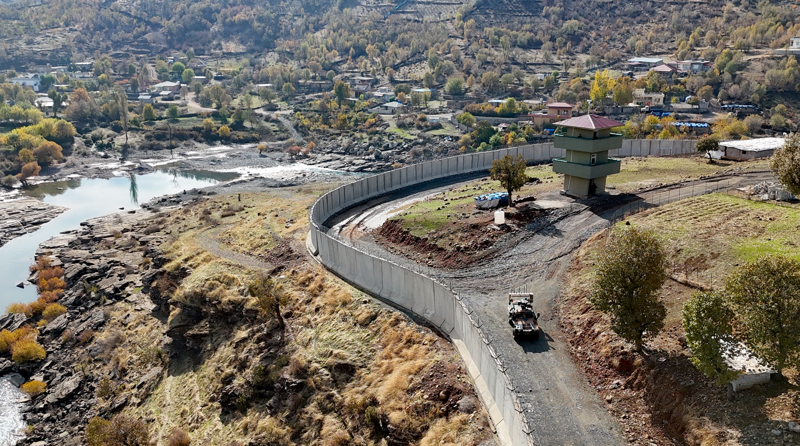 'Sınır ileri karakolu' ve gözetleme kulelerinin de inşa edildiği bölgede 4 metre yüksekliğindeki duvarların üzerine panoramik ve gece görüş özellikli kameralar yerleştirildi, jiletli tel çekildi.