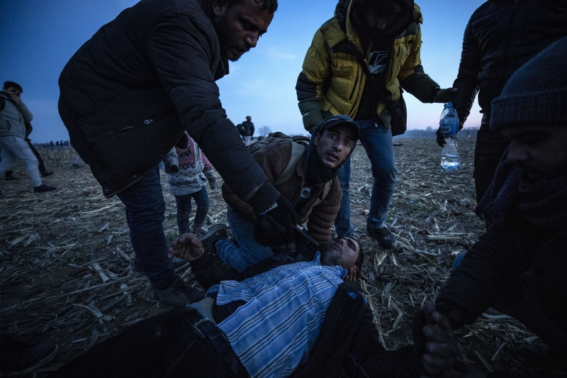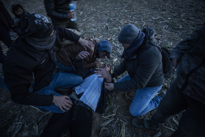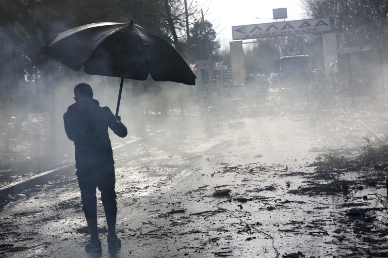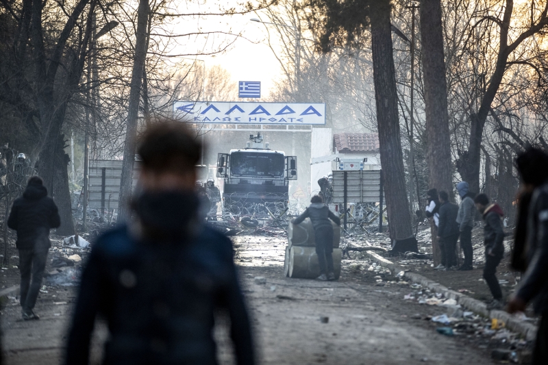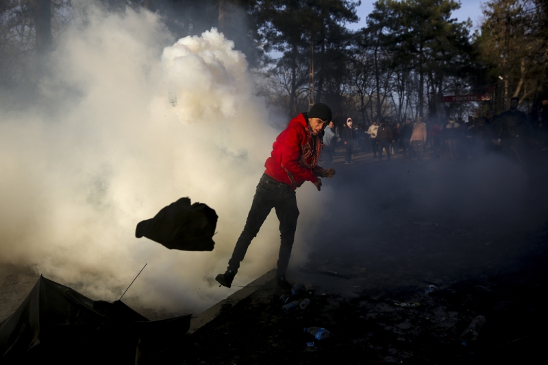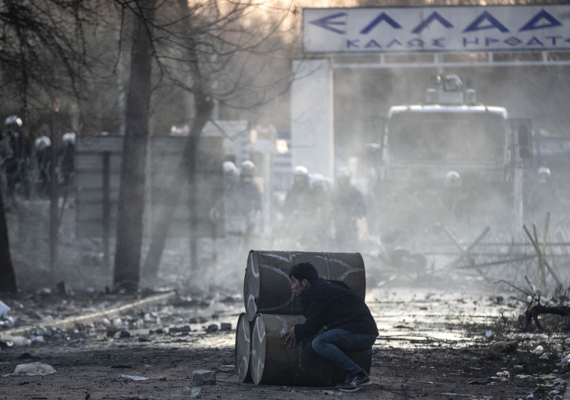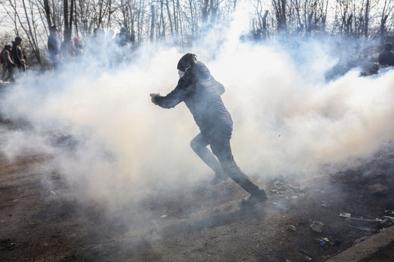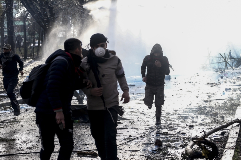 Göçmenler arasında yaralananlar olurken, taş atarak, Yunan güvenlik güçlerine karşılık vermeye çalıştıkları görüldü.