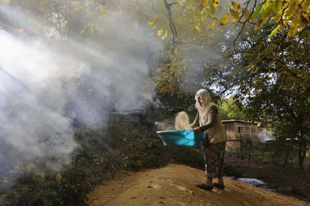 Bahar mevsimiyle, tarlalarda çamurlardan havuzlar oluşturup içini suyla dolduran köylüler, ağustos ayının sonunda hasat ettikleri çeltiği güneşte kurutuyor.