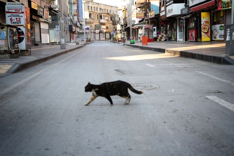 Sokağa çıkma yasağı kapsamında vatandaşlar evlerine çekilirken, boş sokaklar da sokak hayvanlarına kaldı.