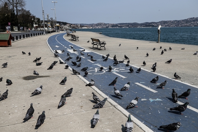 İçişleri Bakanlığınca 30 büyükşehir ile Zonguldak'ta il sınırları içinde 2 gün sokağa çıkma yasağı getirilmesinin ardından İstanbul'da Kız Kulesi çevresinin de boş olduğu görüldü.