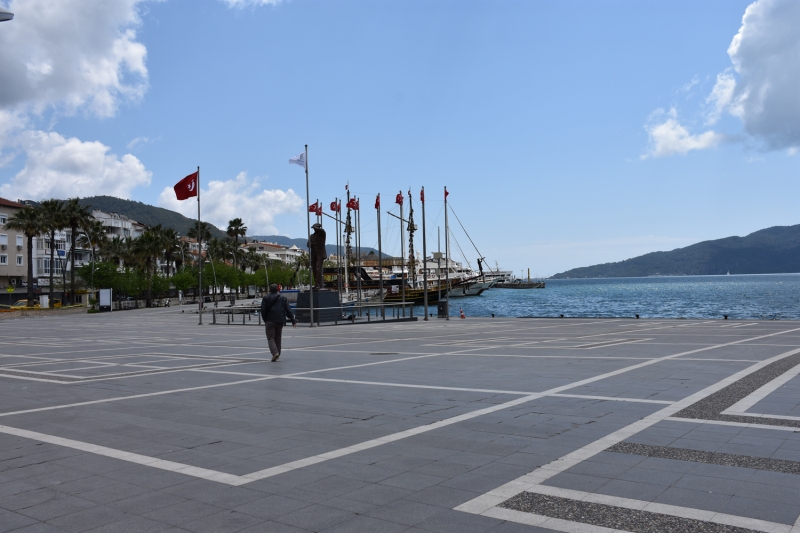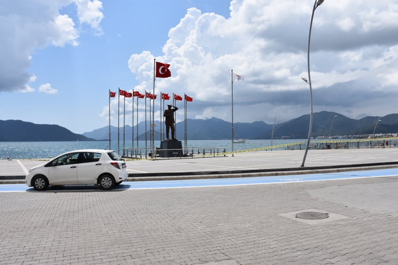 Muğla'nın turistik ilçesi Marmaris'te meydan ve sahillerde sakinlik hakim oldu.
