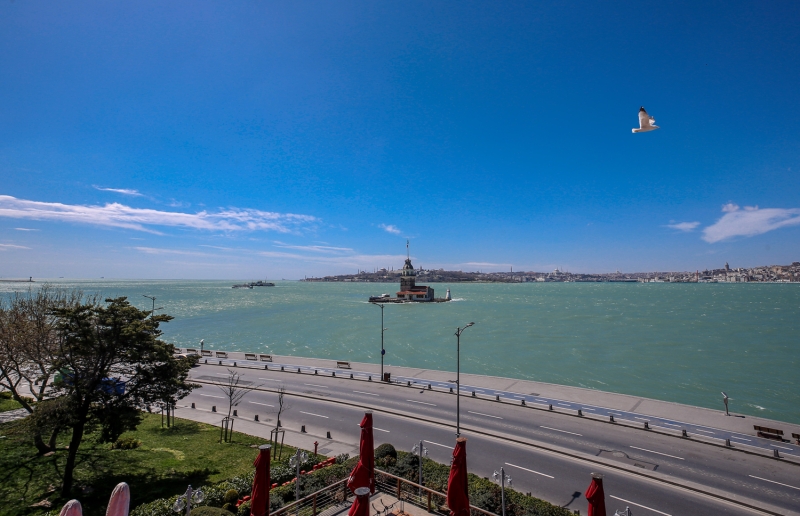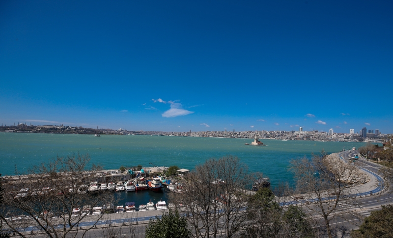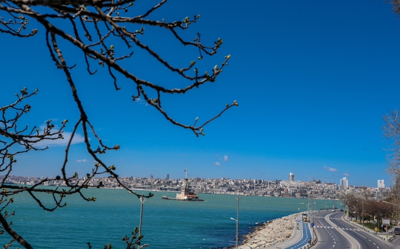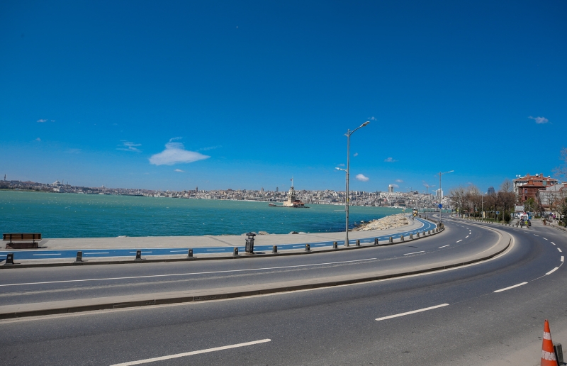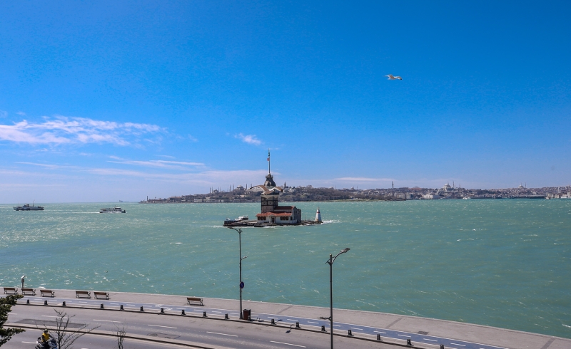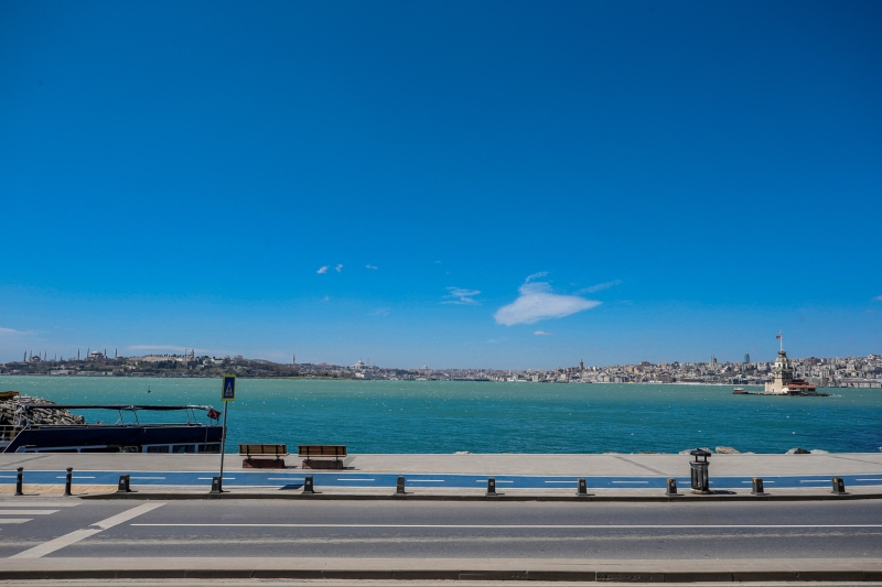 Dünyanın en kalabalık şehirlerinden olan, tarihi ve turistlik mekanlarıyla milyonları ağırlayan İstanbul'da Kız Kulesi çevresinin yeni tip koronavirüs (Kovid-19) salgınını önleme çalışmaları kapsamında alınan kararlara uyulmasıyla boş olduğu görüldü.