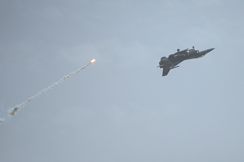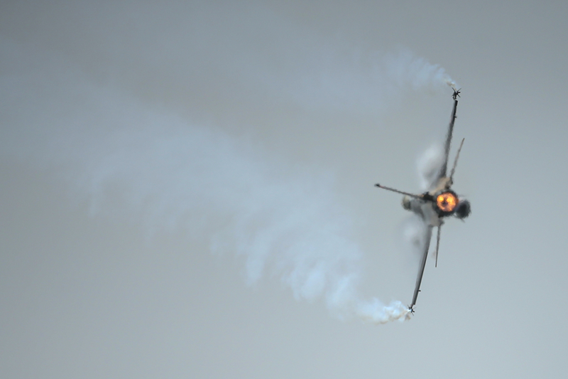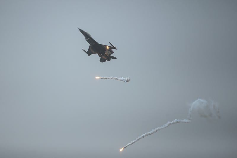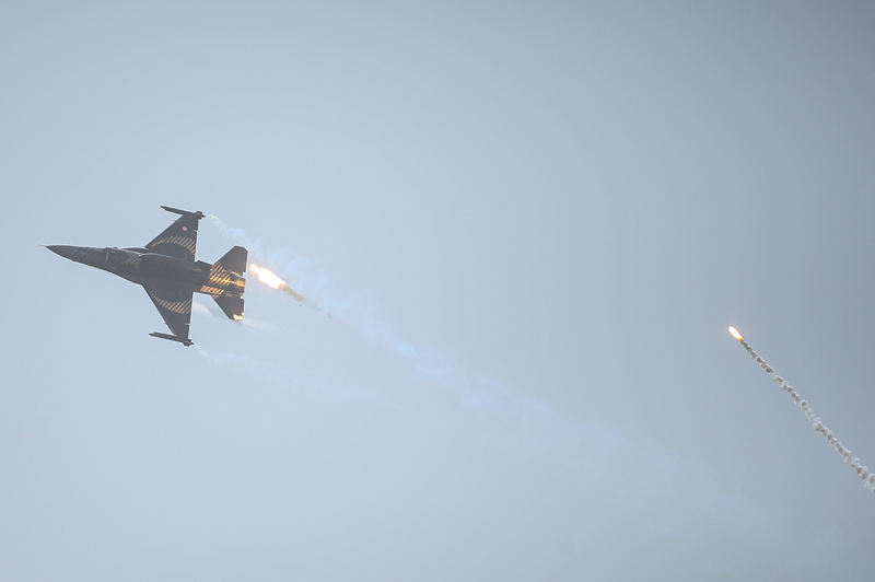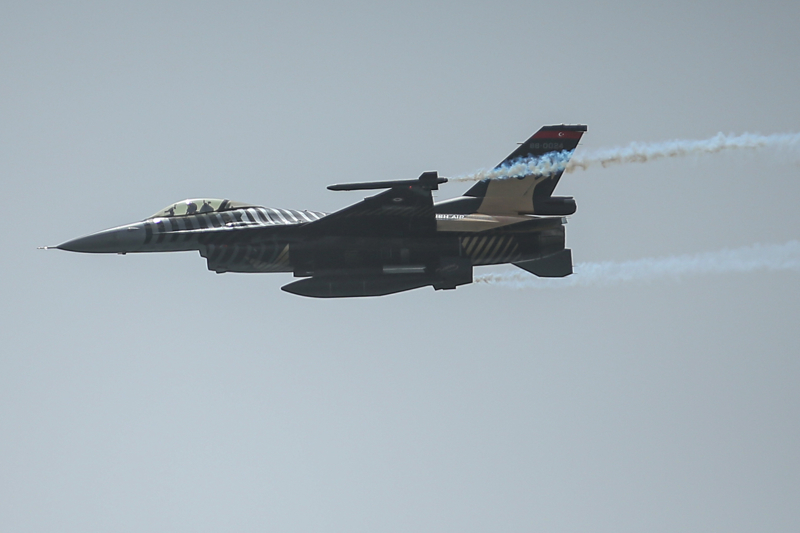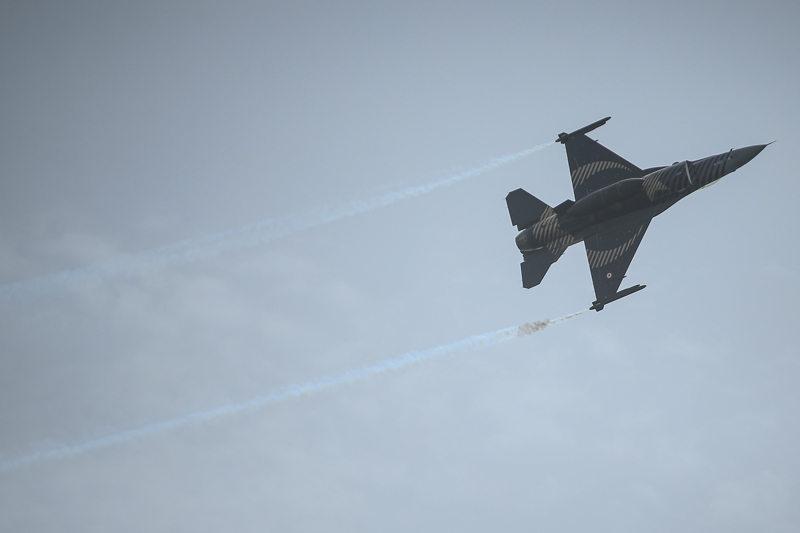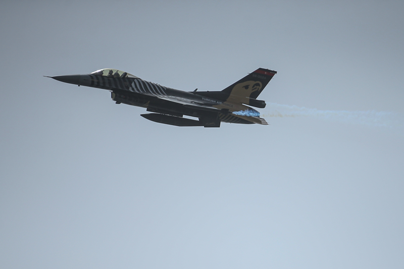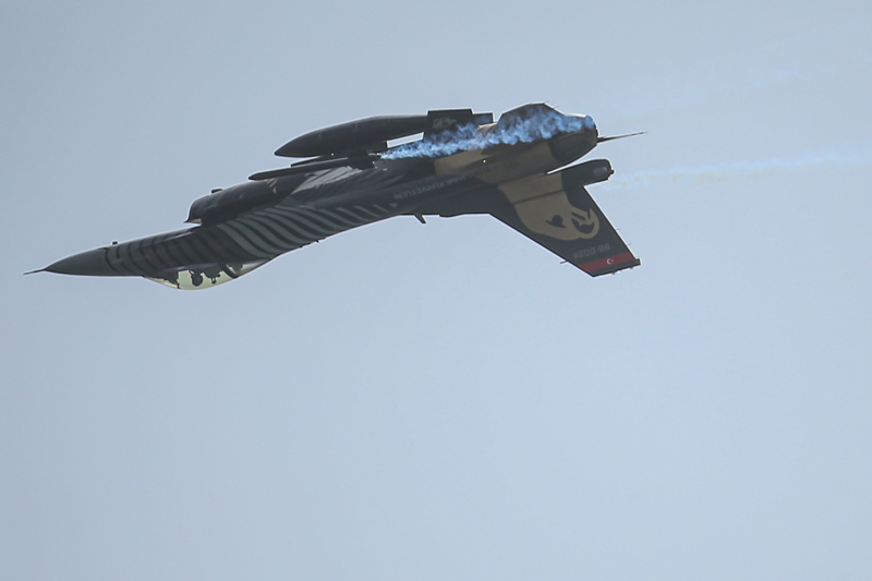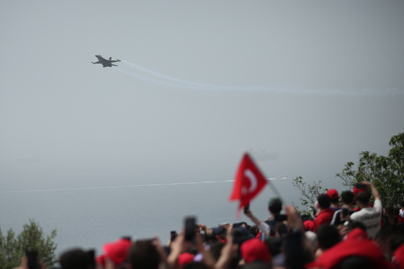 Gençlik ve Spor Bakanlığınca düzenlenen '57. Alay Vefa Yürüyüşü'ne katılan gençler, F-16 uçağıyla yapılan gösteriyi ilgiyle izledi, cep telefonlarıyla görüntüledi.