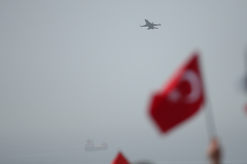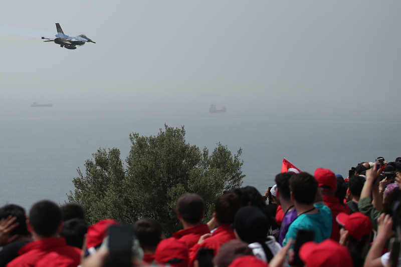 Çanakkale Boğazı semalarında 30 dakika süren gösteriyi izleyenler, heyecan dolu anlar yaşadı.