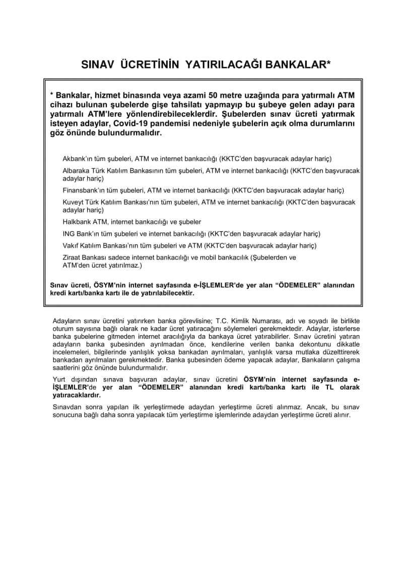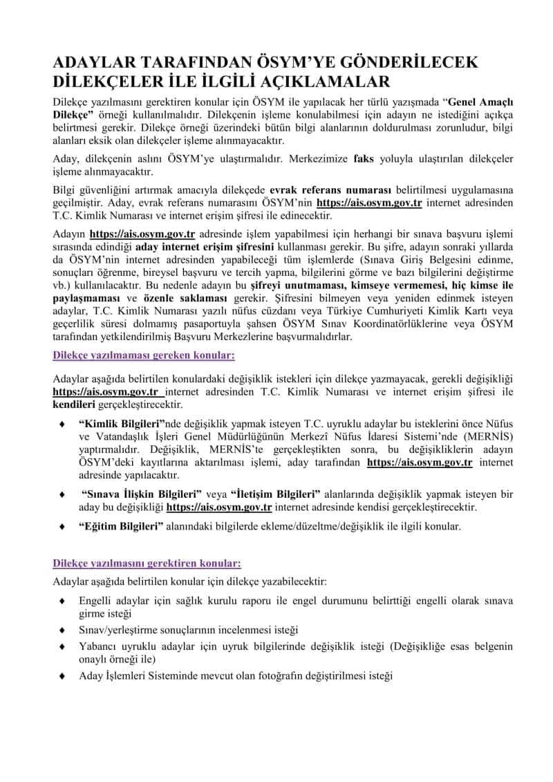 Genel yetenek-genel kültür, eğitim bilimleri, alan bilgisi, öğretmenlik alan bilgisi oturumları için başvurular 13 Temmuz’a kadar devam edecek. Ön lisans başvuruları ise 21 Ağustos’ta başlayacak.