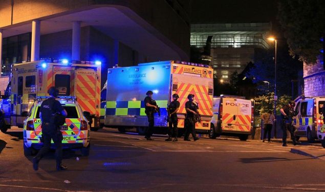 İngiltere'nin Manchester şehrinde bulunan Manchester Arena'da, Amerikalı şarkıcı Ariana Grande'nin performansı sırasında iki patlama meydana geldi