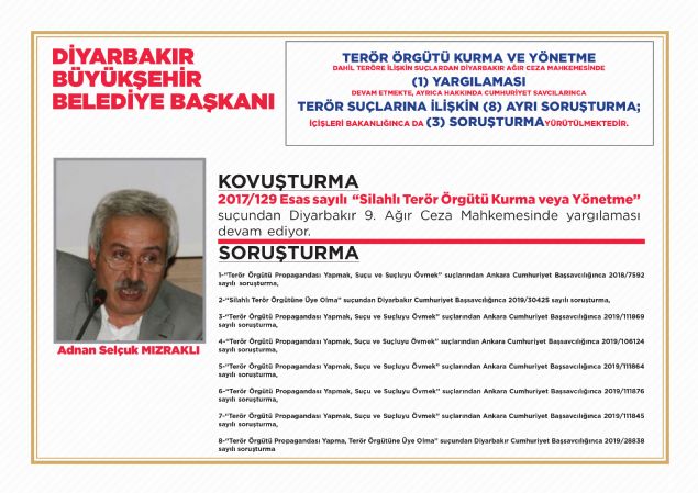 İçişleri Bakanlığının aldığı kararla Diyarbakır Büyükşehir Belediye Başkanı Selçuk Mızraklı, Mardin Büyükşehir Belediye Başkanı Ahmet Türk ve Van Büyükşehir Belediye Başkanı Bedia Özgökçe Ertan görevlerinden uzaklaştırıldı. Belediye başkanlarının görevlerinden alınmaları ile ilgili olarak ise birçok gerekçe öne çıkıyor.