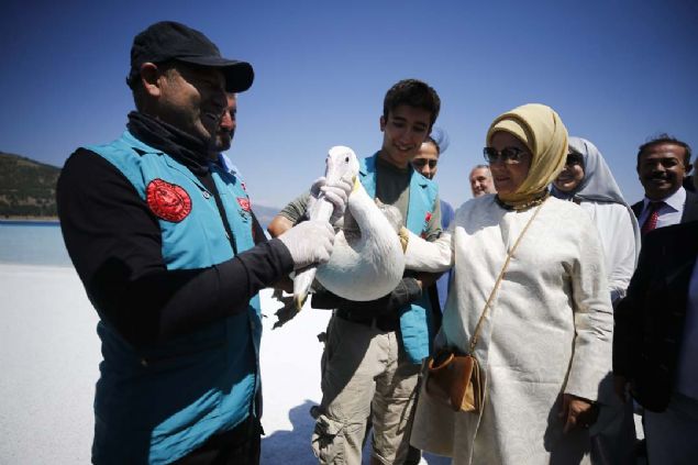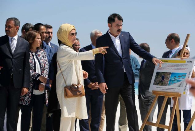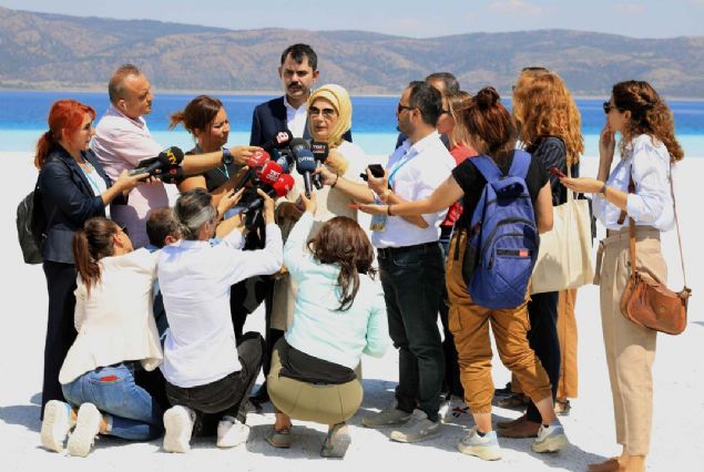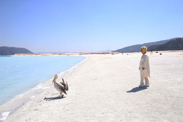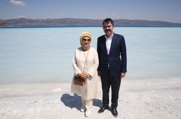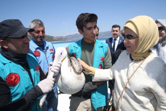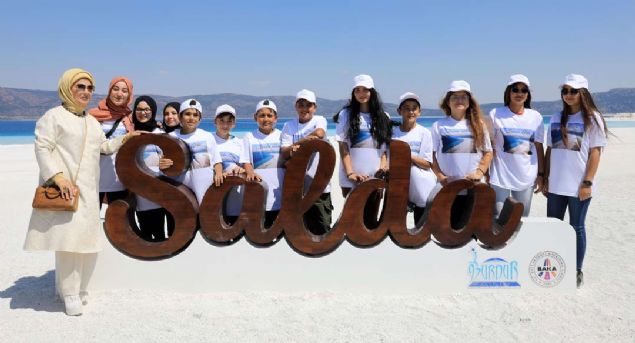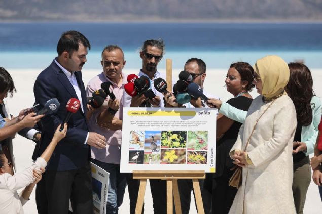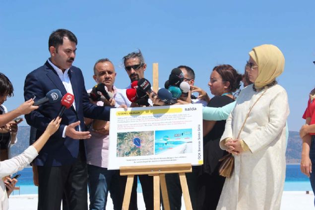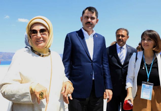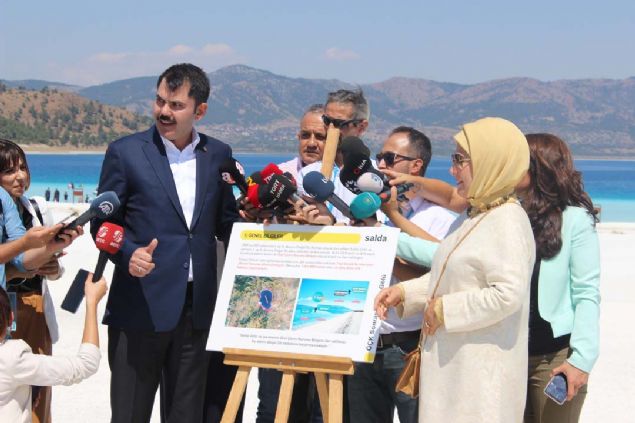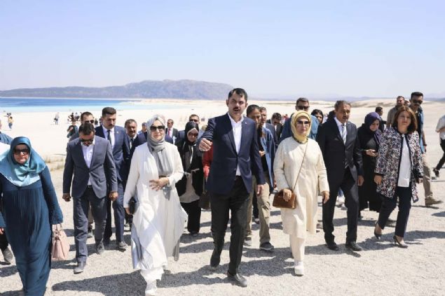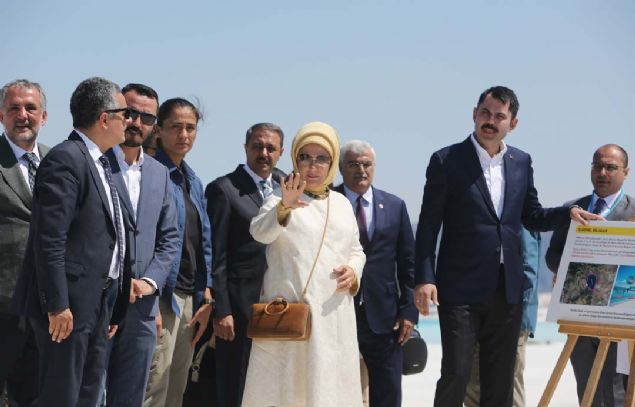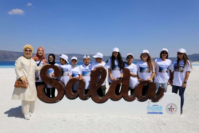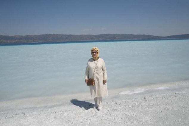 Burdur'da beyaz kumsalları ve turkuaz rengi nedeniyle 'Türkiye'nin Maldivleri' olarak ünlenen Salda Gölü'nü gezen ve yapılan çalışmalar hakkında bilgi alan Cumhurbaşkanı Recep Tayyip Erdoğan'ın eşi Emine Erdoğan, 'Gerçekten görünce mutmain oldum. Bütün halkımızın da mutmain olmasını tavsiye ediyorum. O halden bu hale gelişi, gerçekten çok güzel bir girişim. Bakanlığımızı tebrik ediyorum.' dedi.