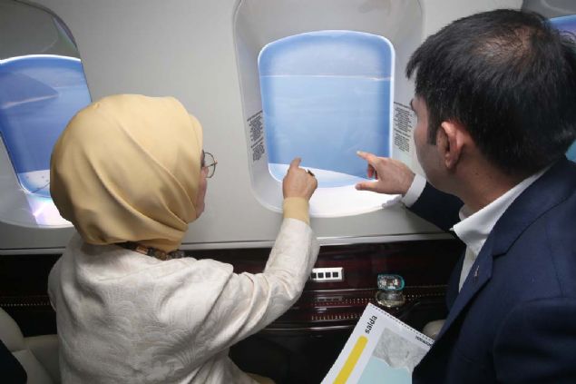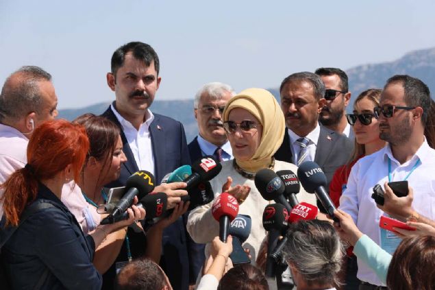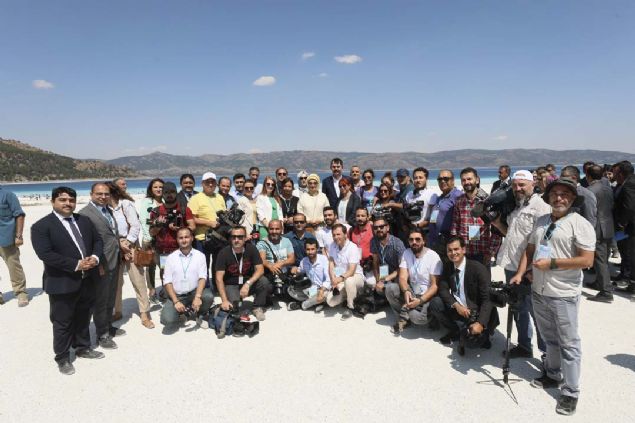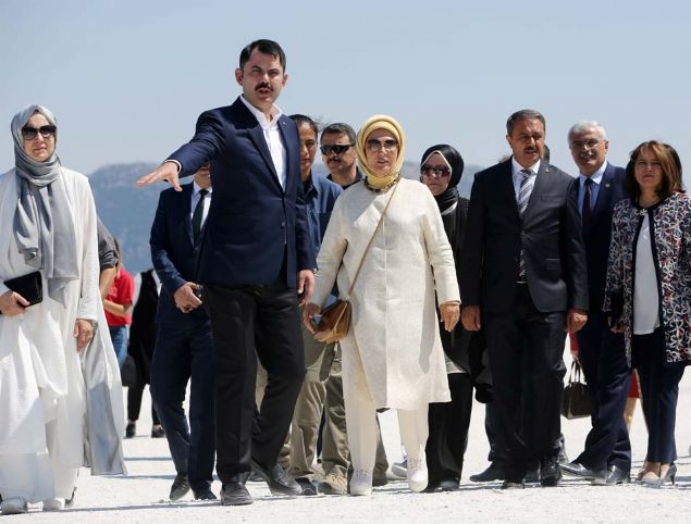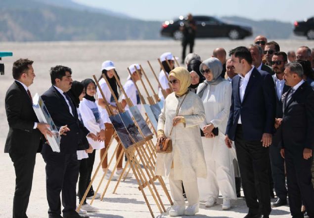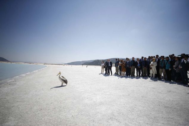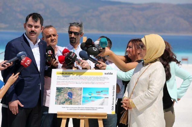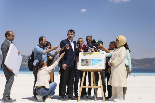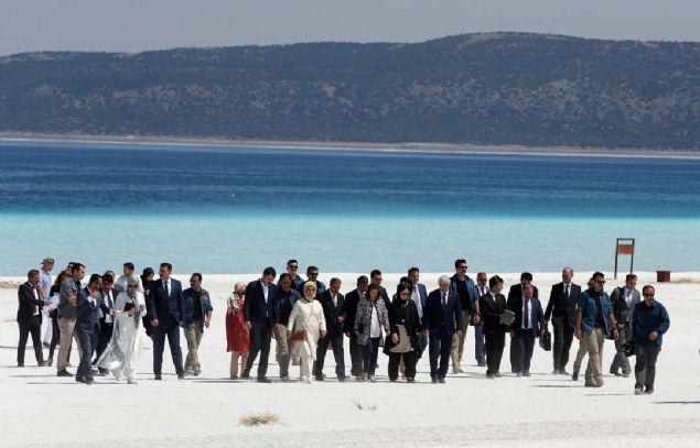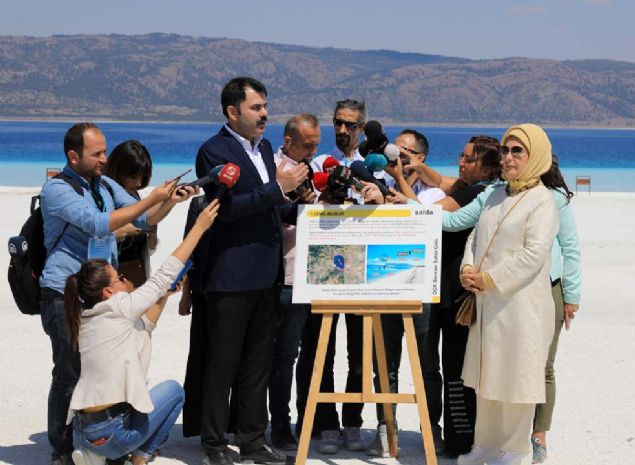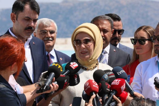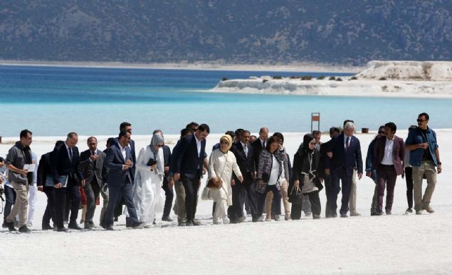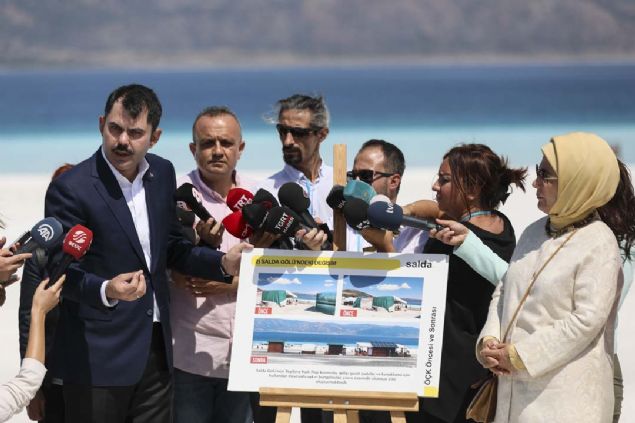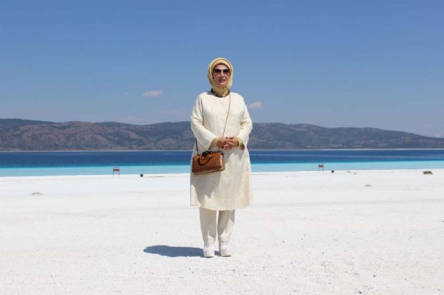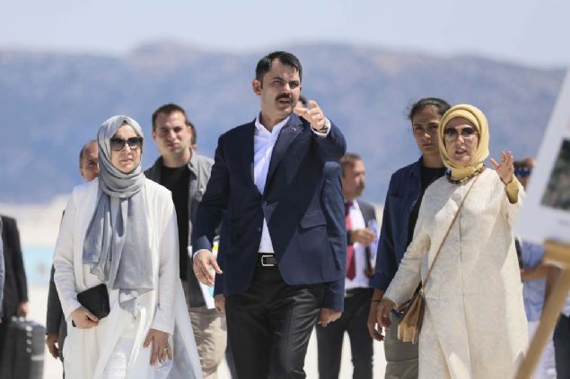 Burdur'da beyaz kumsalları ve turkuaz rengi nedeniyle 'Türkiye'nin Maldivleri' olarak ünlenen Salda Gölü'nü gezen ve yapılan çalışmalar hakkında bilgi alan Cumhurbaşkanı Recep Tayyip Erdoğan'ın eşi Emine Erdoğan, 'Gerçekten görünce mutmain oldum. Bütün halkımızın da mutmain olmasını tavsiye ediyorum. O halden bu hale gelişi, gerçekten çok güzel bir girişim. Bakanlığımızı tebrik ediyorum.' dedi.