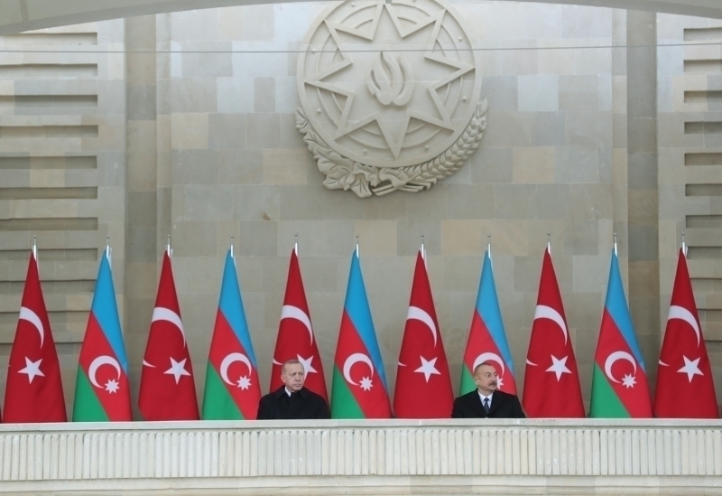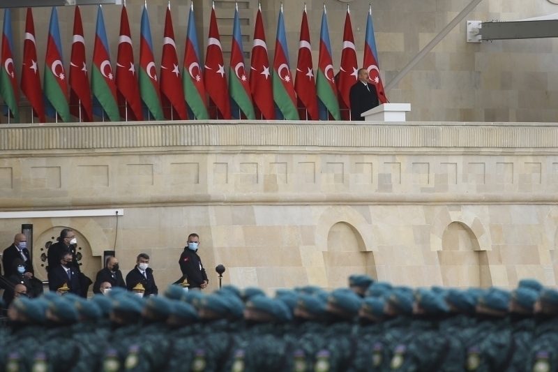 Azerbaycan ordusunun Dağlık Karabağ'da elde ettiği zafer, Türk ve Azerbaycan askerlerinin katıldığı törenle kutlandı.