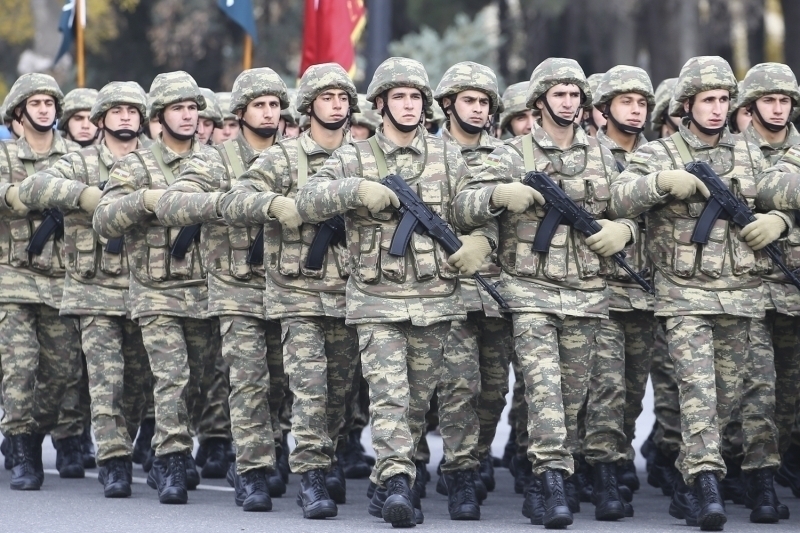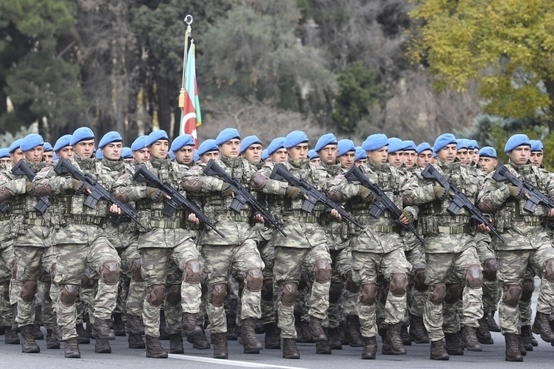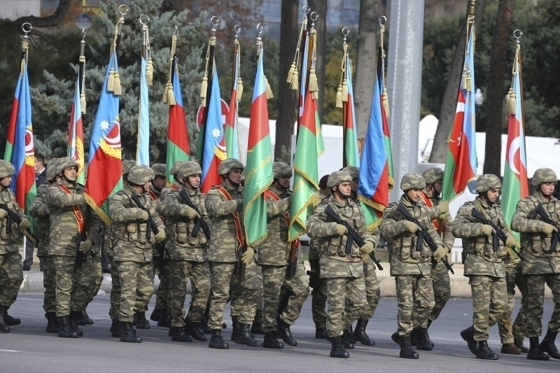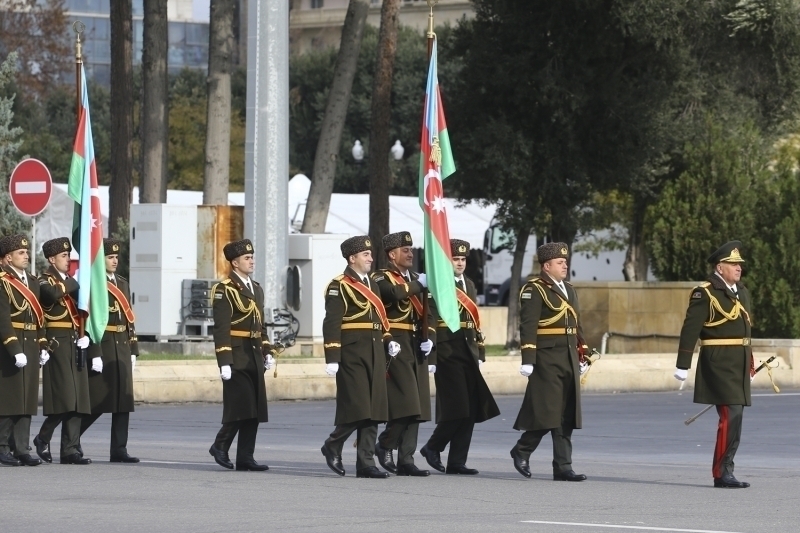 Azerbaycan ordusunun özel harekat birlikleri, deniz piyadeleri, sınır muhafızları, jandarmalar, Ulusal Güvenlik Servisi timleri ve askeri okul öğrencileri zafer geçişi yaptı. Askerlerin yürüyüşü esnasında mehter müziği de çalındı.