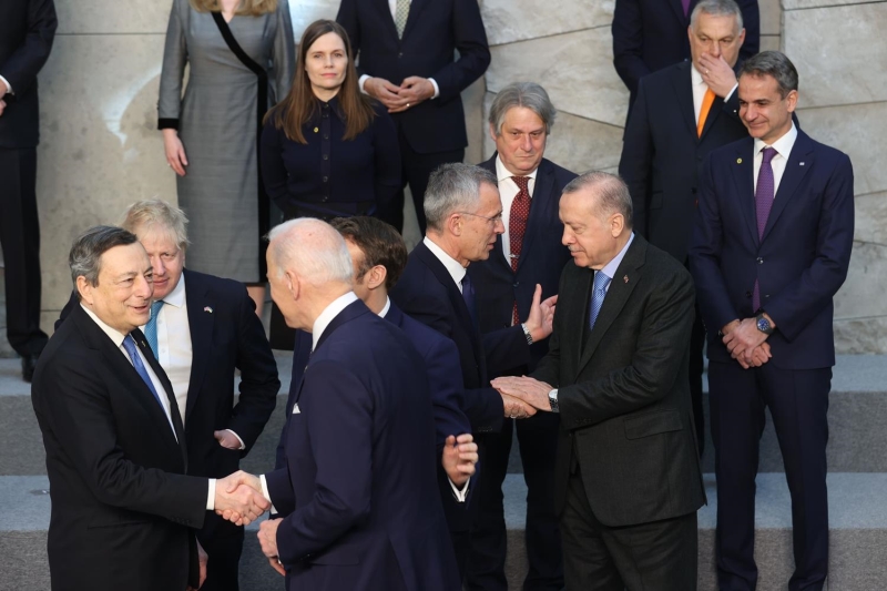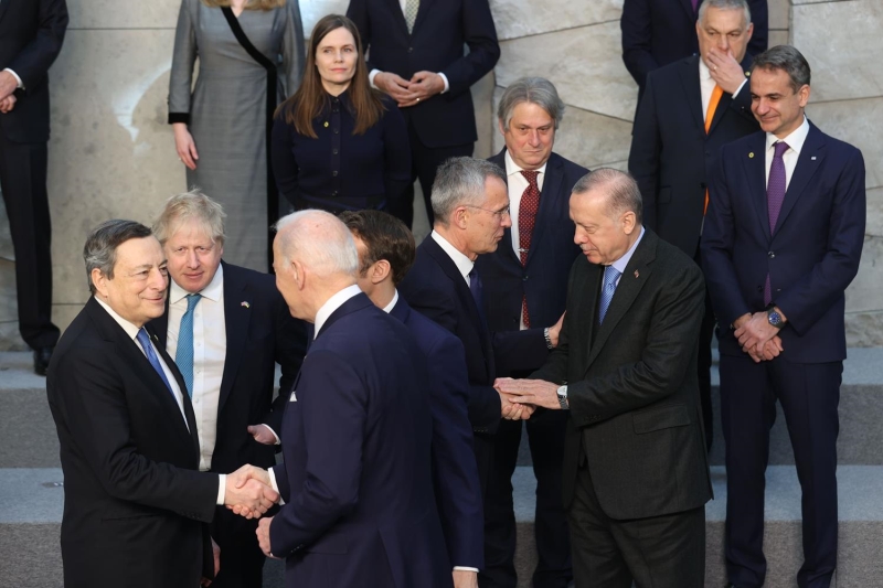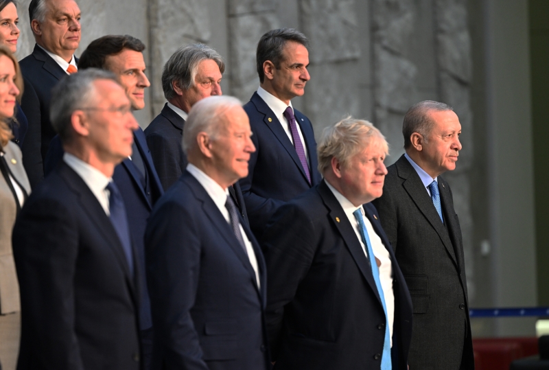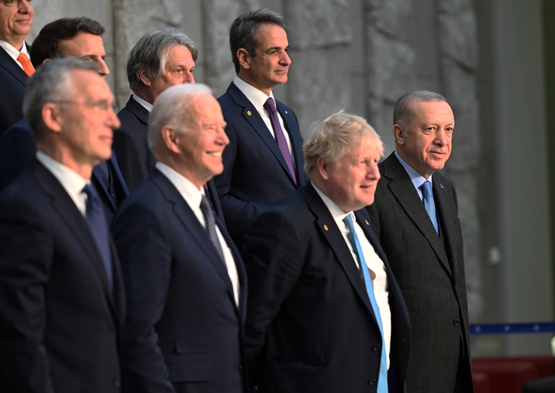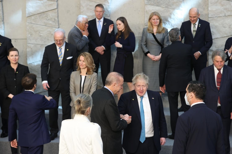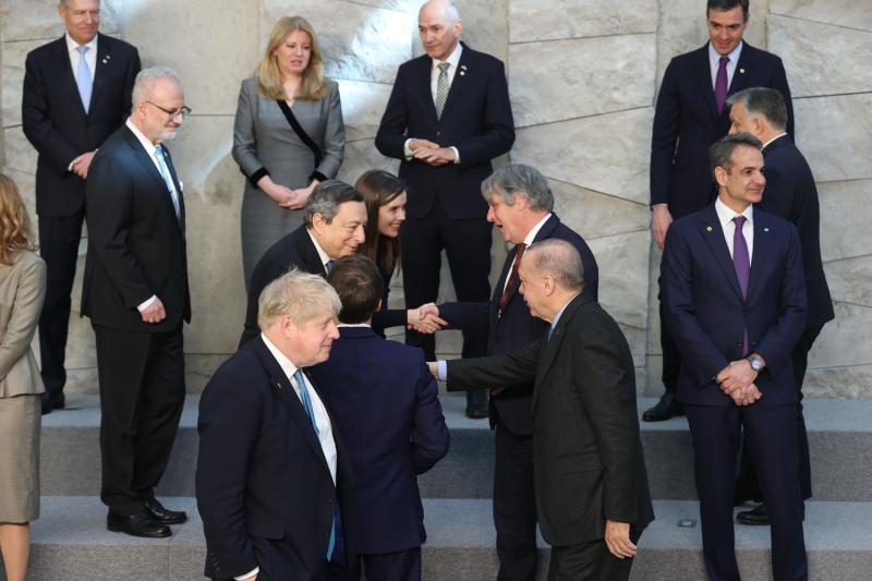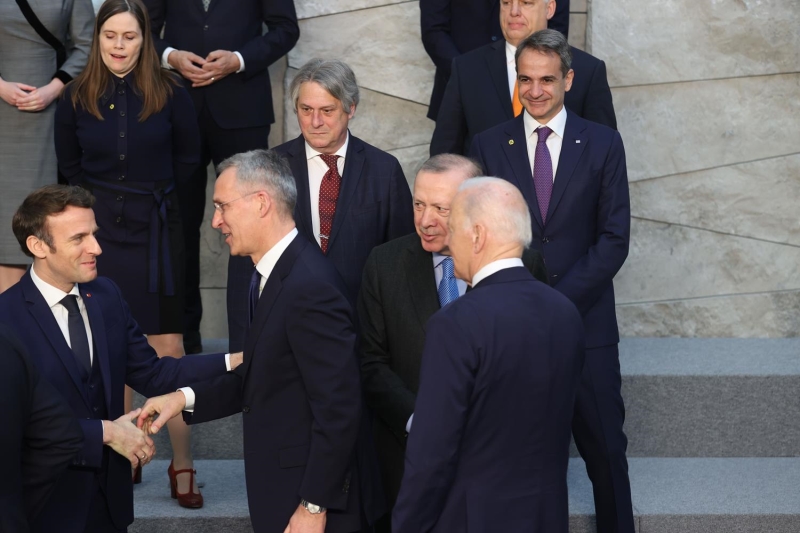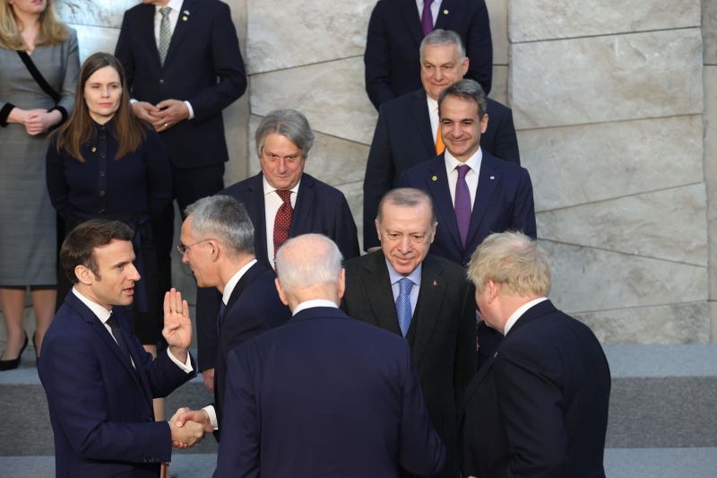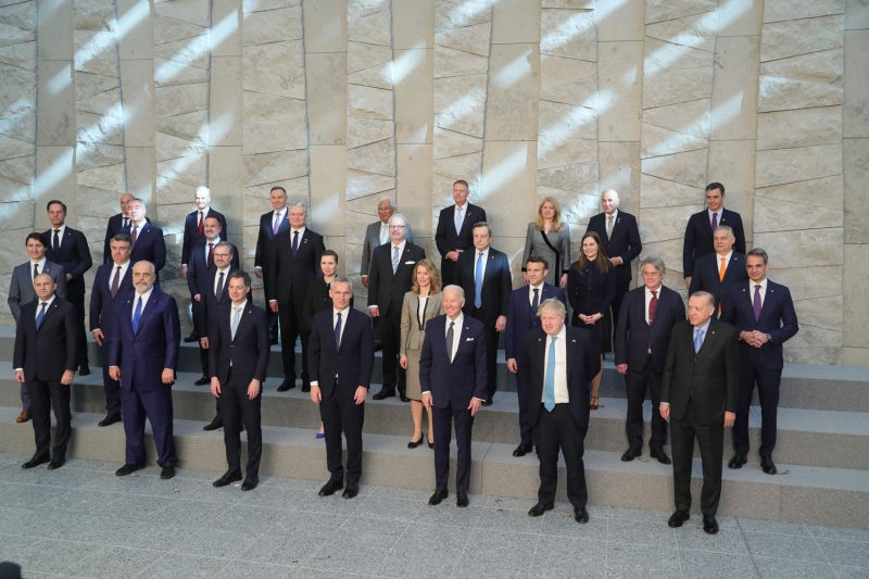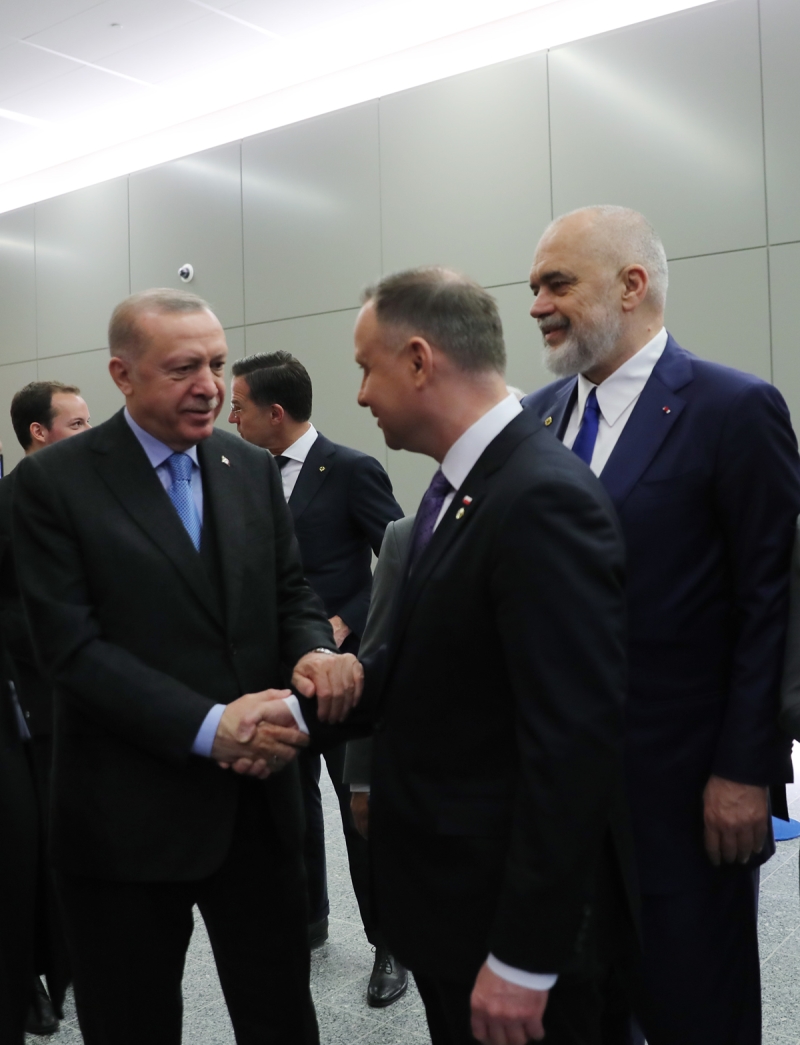 Türkiye Cumhurbaşkanı Recep Tayyip Erdoğan, NATO Olağanüstü Devlet ve Hükümet Başkanları Zirvesi'ndeki aile fotoğrafı çekimine katıldı.