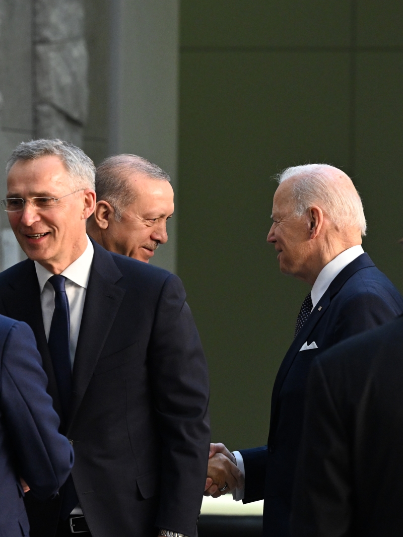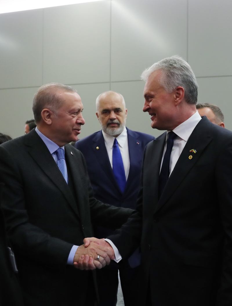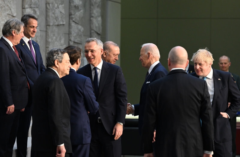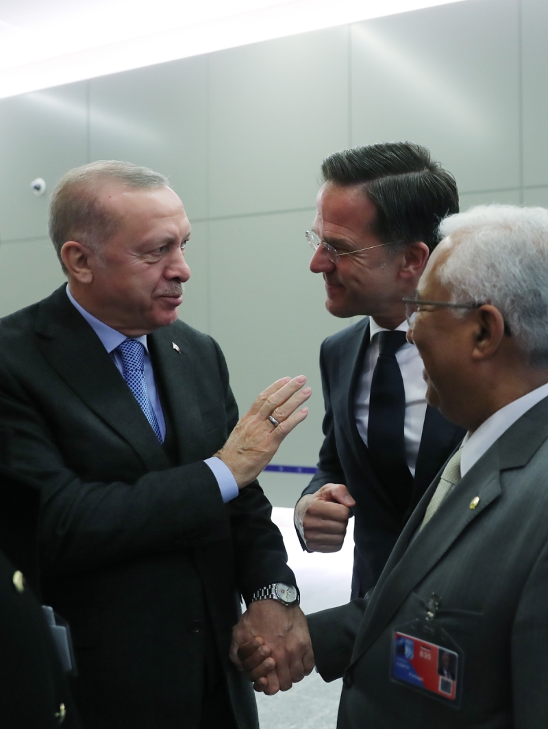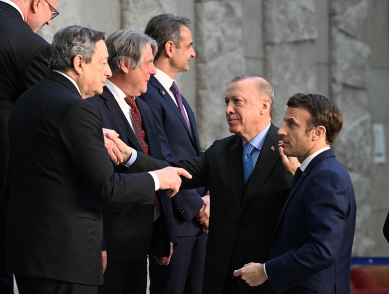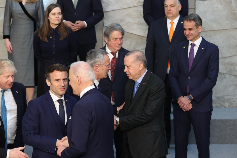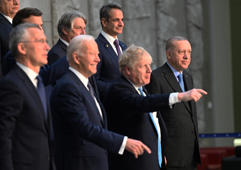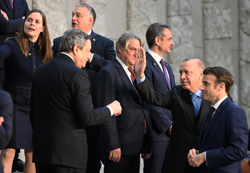 Türkiye Cumhurbaşkanı Recep Tayyip Erdoğan, NATO Olağanüstü Devlet ve Hükümet Başkanları Zirvesi'ndeki aile fotoğrafı çekimine katıldı.