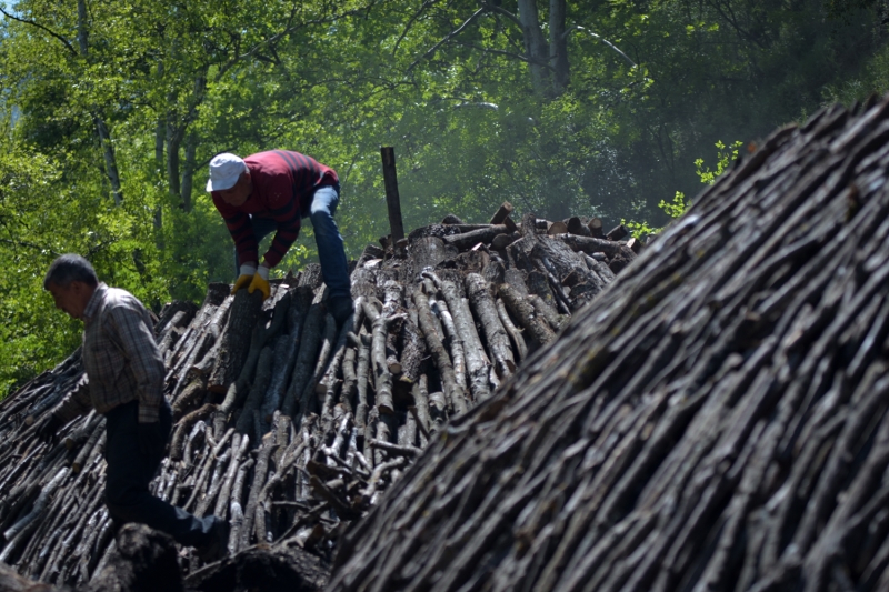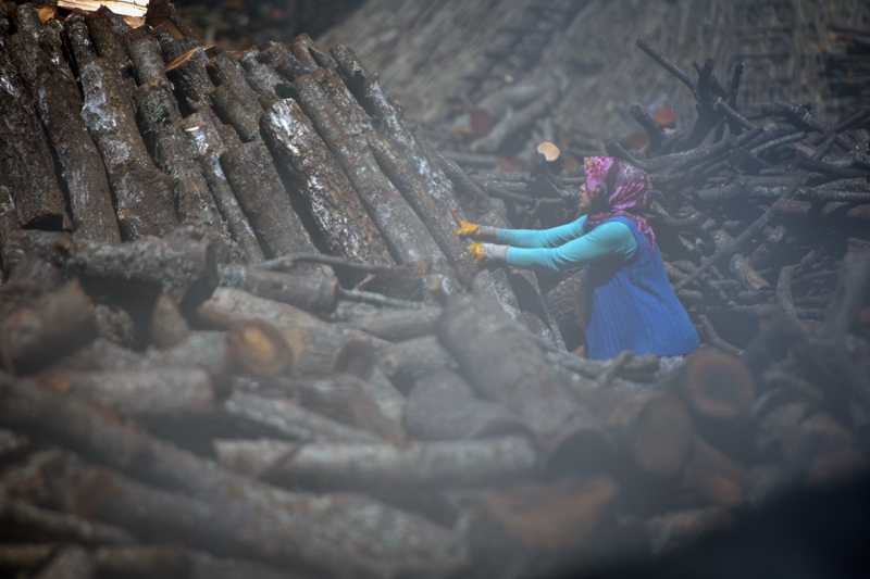Bursa'nın merkez Osmangazi ilçesinin kırsal mahallelerinden Dağakça'da, meşe odunlarından mangal kömürü elde etmek için çalışan köylüler, toz duman arasında mesai yapıyor. Kadın-erkek takriben 100 kişinin ekmeğini çıkardığı mangal kömürü işinde çalışanlar 200 lira yevmiye ile mesai harcıyor.