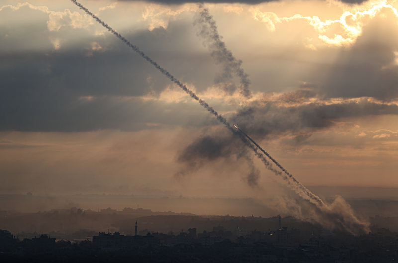 Abluka altındaki Gazze Şeridi'ndeki Filistinli gruplar, birçok noktadan İsrail'e çok sayıda roket fırlattı.