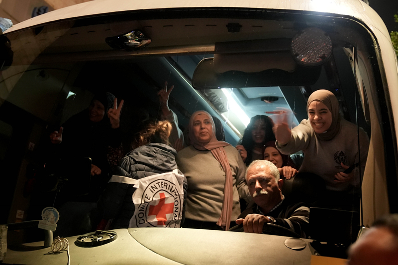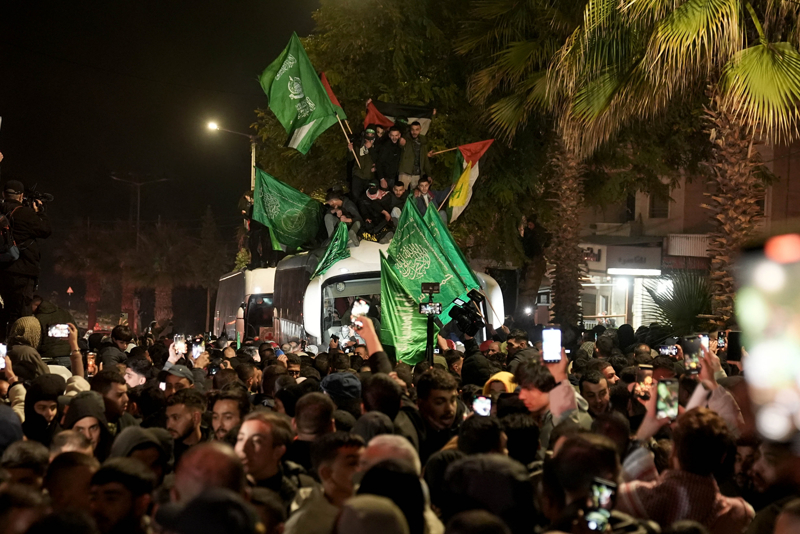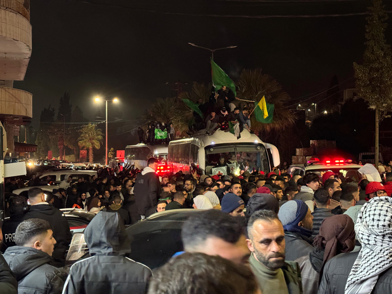 İsrail ile Hamas arasında sağlanan esir takası kapsamında serbest bırakılan Filistinliler, Batı Şeria'nın Beitunia beldesine ulaştı. Kızılhaç'a ait otobüslerle beldeye gelen Filistinliler, coşkulu kalabalık tarafından karşılandı.