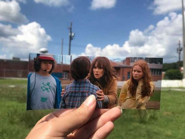 Ollie Mei ve Justin Sparapani çifti, Atlanta'ya giderek Stranger Things dizisinin çekildiği yerleri buldu ve filmin sahneleriyle mekanları birleştirerek fotoğrafladı.