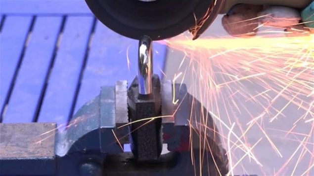Motosiklet kilidi ve asma kilidi keserek içinde ne olduğuna baktılar.
