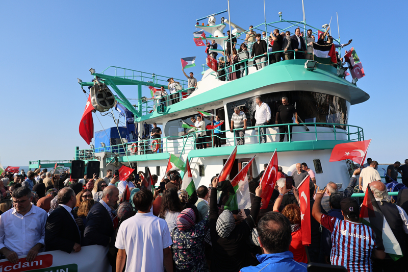 Filistin'e Destek Platformunca organize edilen program kapsamında Arhavi Balıkçı barınağındaki gemi ve teknelere, Türk ve Filistin bayrakları asıldı. Arhavi'den denize açılan ve bir süre sonra Hopa İskelesi'ne gelen gemi ile tekneler, burada vatandaşlar tarafından karşılandı.