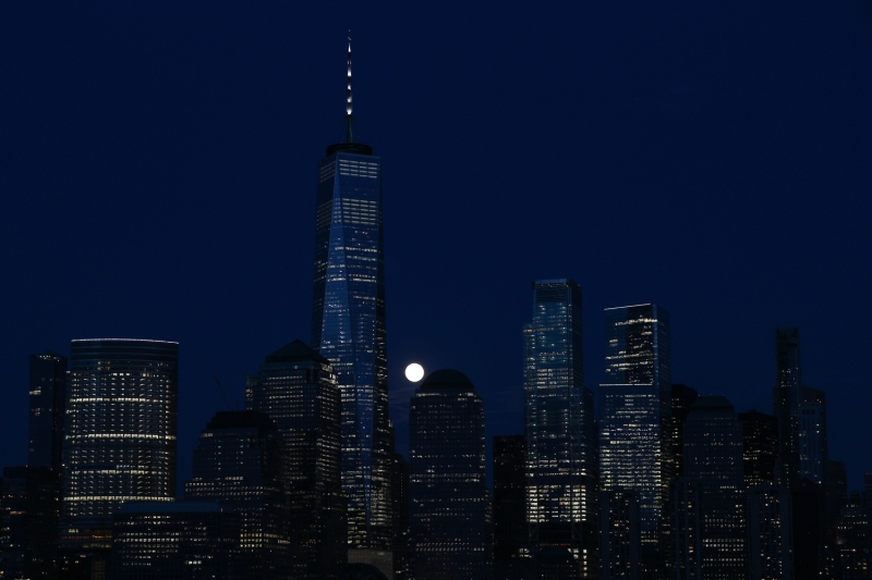 New York binaları üzerinden yükselen ay güzel görüntüler oluşturdu.