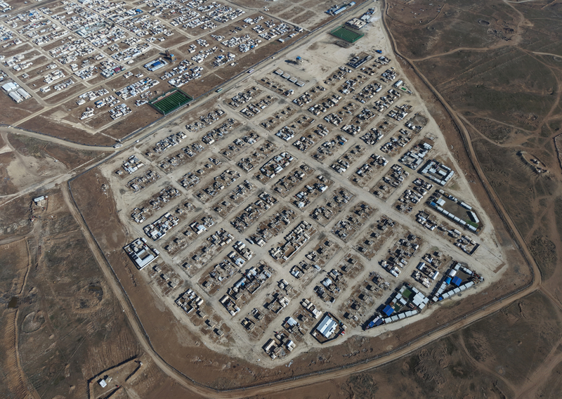 Anadolu Ajansı (AA), Haseke ilinin güneyinde yer alan ve DEAŞ'lı teröristlerin çoğunluğu kadın ve çocuklardan oluşan ailelerinin tutulduğu Hol Kampı'nı havadan görüntüledi.