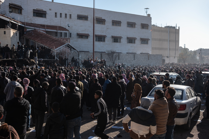 Suriye'de devrilen Beşşar Esed rejiminin başkent Şam'daki işkencehanesi Sednaya Hapishanesi'ndeki gizli bölme iddiaları araştırılırken Anadolu Ajansı (AA) ekiplerin çalışmaları ve yakınlarından haber almayı bekleyen Suriyelileri görüntüledi.