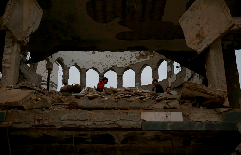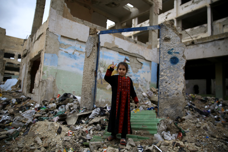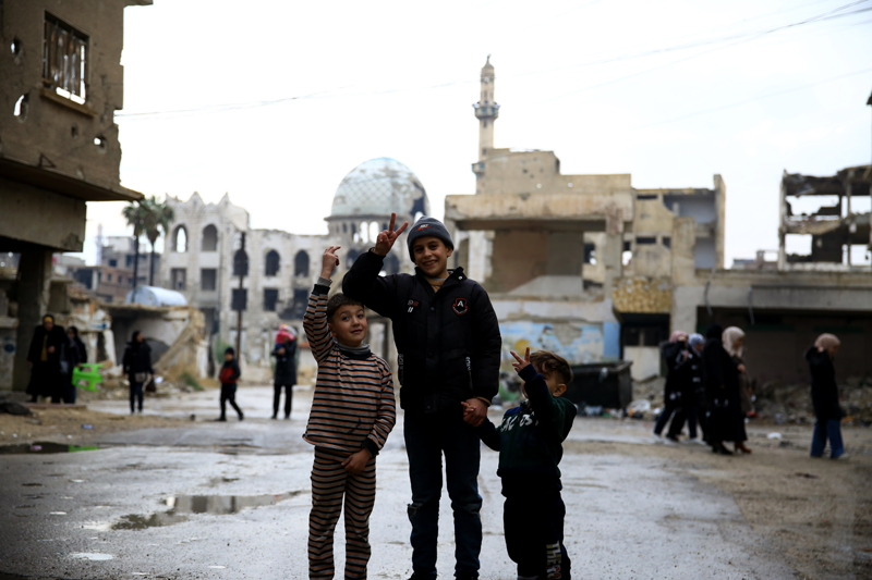 Yermuk Kampı'na geri dönen ailelerin çocukları okullarına gidiyor. AA'nın ekibini, kamera ve fotoğraf makinesiyle gören çocuklar, hemen poz vermeye, devrim şarkıları söylemeye çalışıyor. Kamyonet kasaları okul servisi görevi görürken taşıdıkları çocukların söyledikleri şarkılar yıkımın ortasında yankılanıyor.