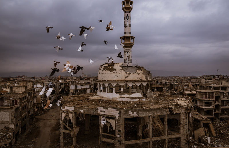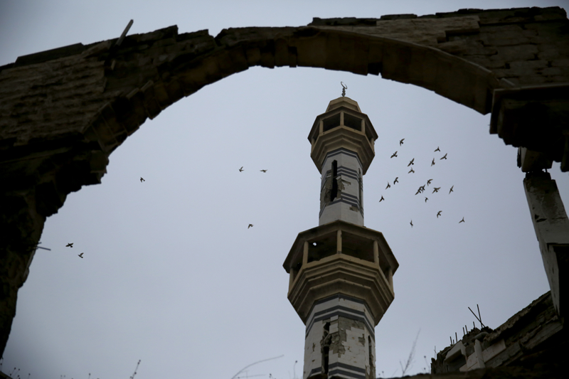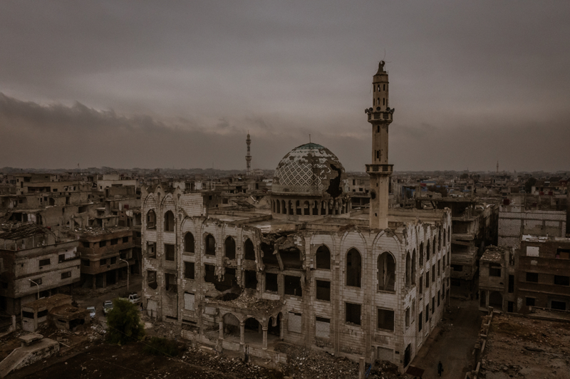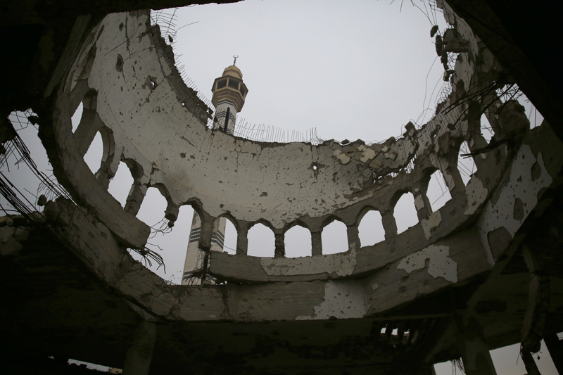 Filistinlilerin, Suriyelilerin bağış toplayarak yaptırdığı, bir dönem kampın gururu niteliğindeki yapı bölgedeki çatışmalarda ağır hasar almış. Eskiden cuma namazında, ramazan aylarında bölge halkının bir araya geldiği camiden geriye, tepesi yıkılmış kubbesi, mühimmatın kemirdiği minaresi, etrafa saçılmış taşa hatla süslenmiş ayetlerin parçaları, arabesk tarzında süslü mermerlerinin kırıkları, paçavra olmuş halılardan başka bir şey kalmamış.