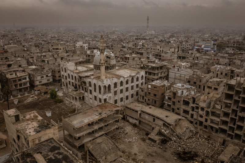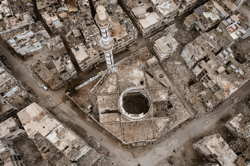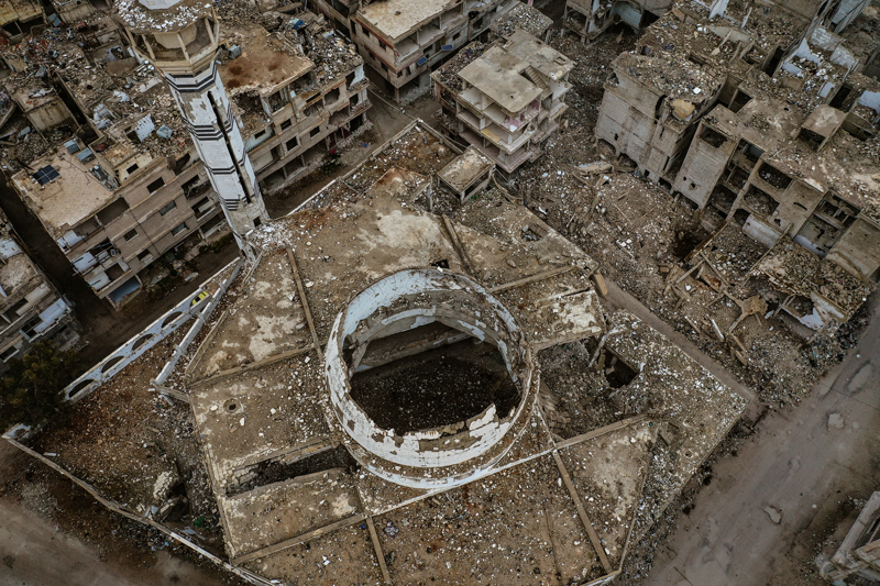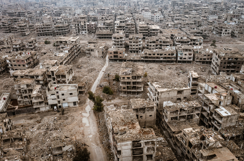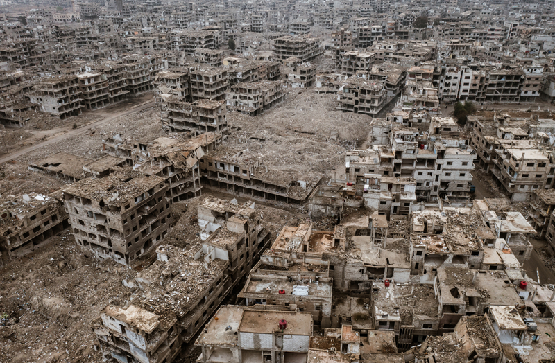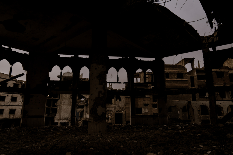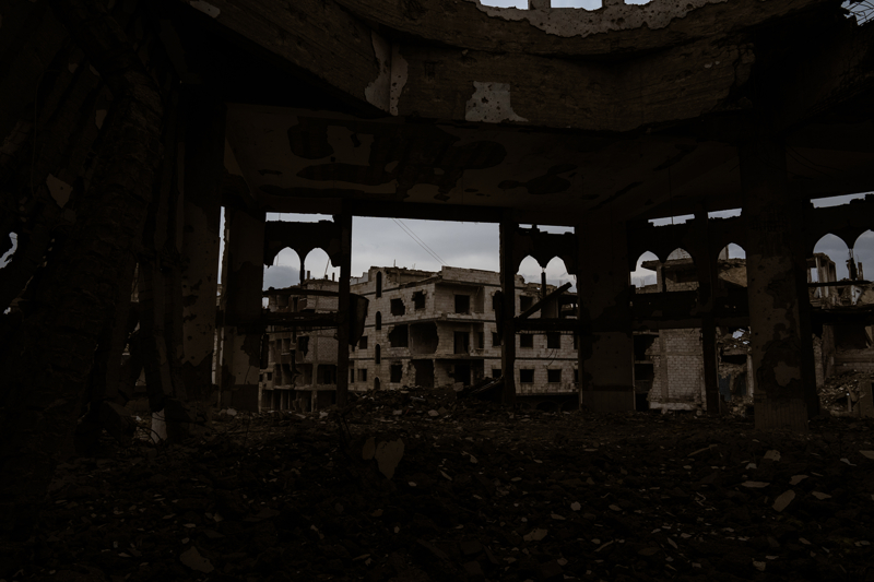 Bölgede bir dönem okul, hastane, iş yeri görevi gören binaların bir kısmı enkaz, bir kısmı ise sadece iskelet olarak ayakta kalmış.
