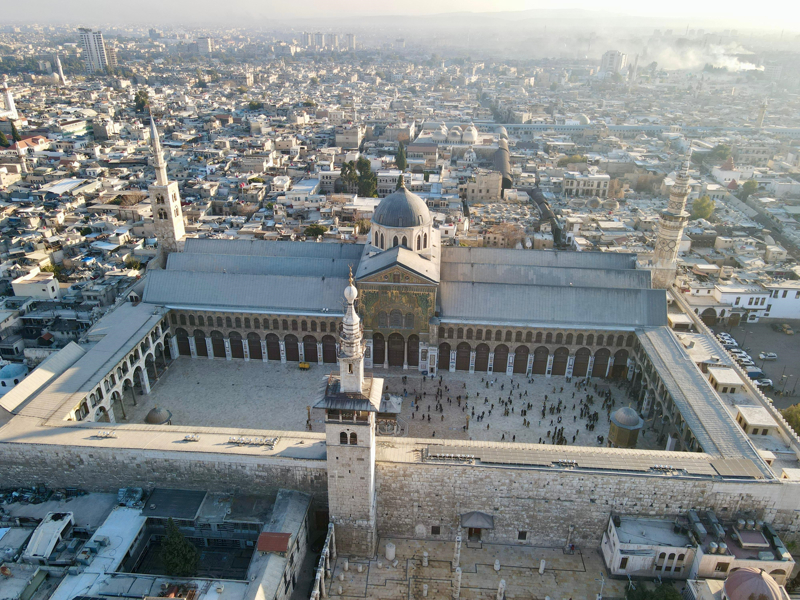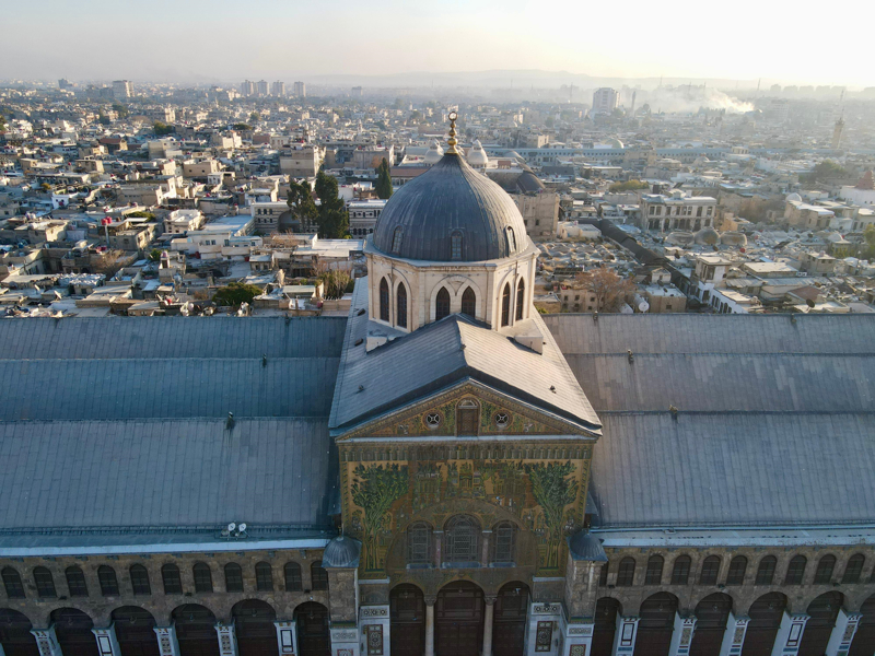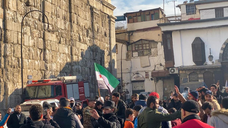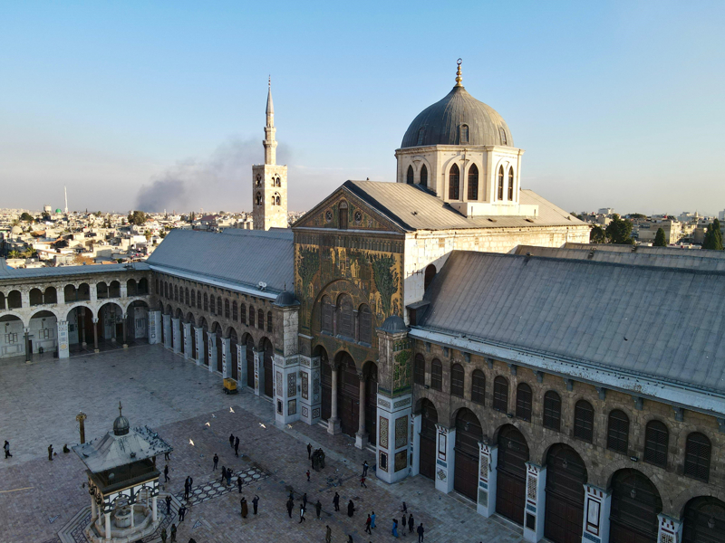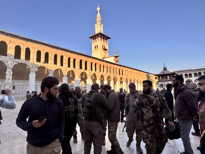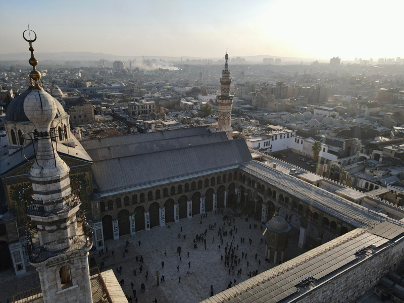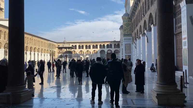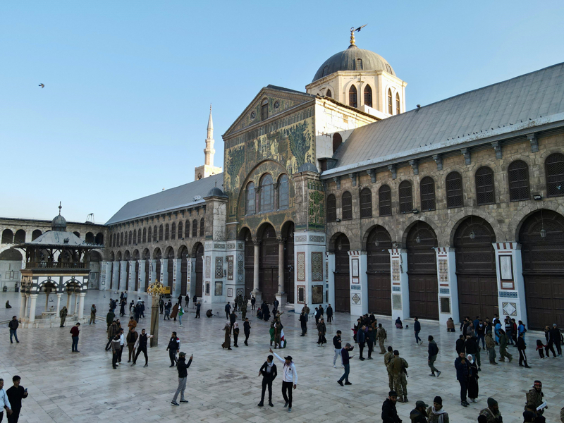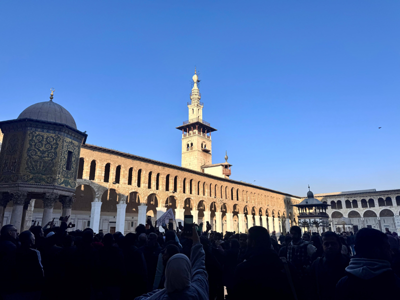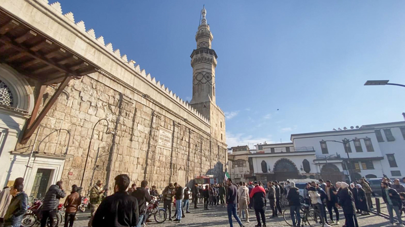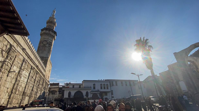 Başkent Şam'daki Suriyeliler 61 yıllık Baas rejiminin çökmesi ardından Emevi Cami'sine akın etti.