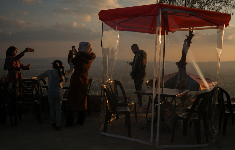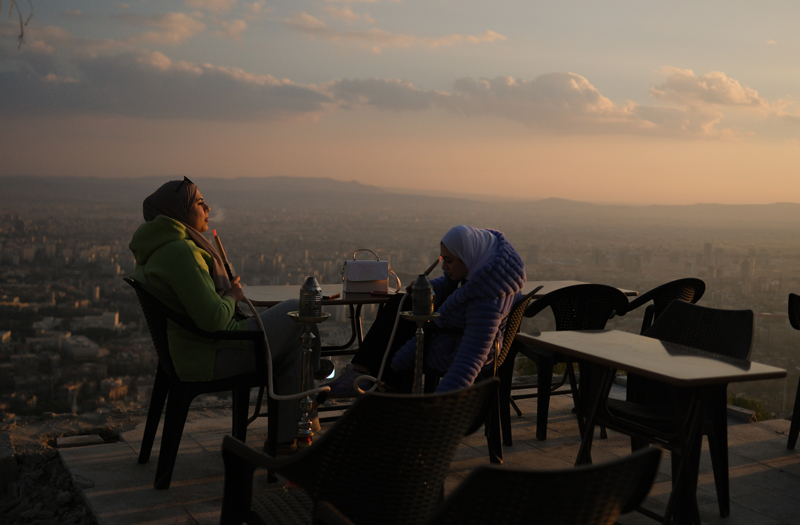 Suriyeliler, hasret kaldıkları manzaranın tadını çıkarmak için Kasyun Dağı'na çıkarak Şam'ın güzelliğini, uzandığı büyük ovayı keyifle seyrediyor. Suriyeliler, cep telefonlarıyla kavuştukları manzara eşliğinde hatıra fotoğrafı çektiriyor.