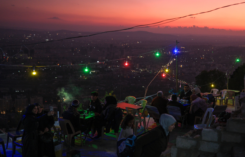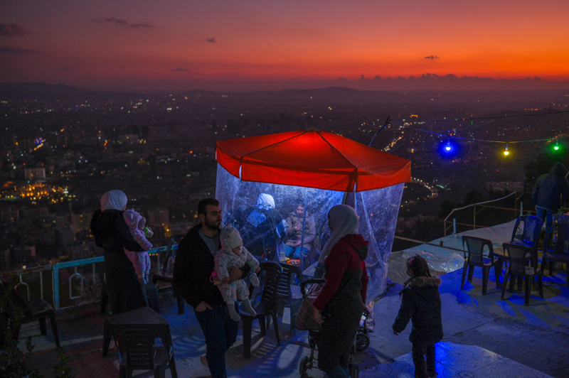 Suriyeliler, Esed rejiminin yasakladığı Kasyun Dağı'ndan Şam manzarasının tadını çıkarıyor