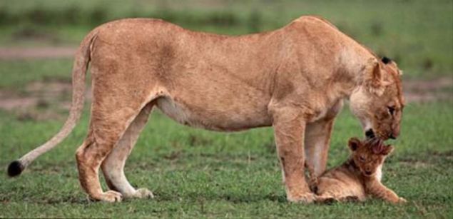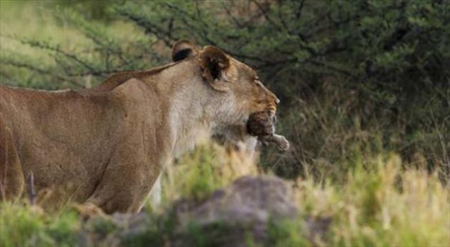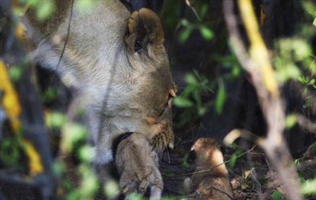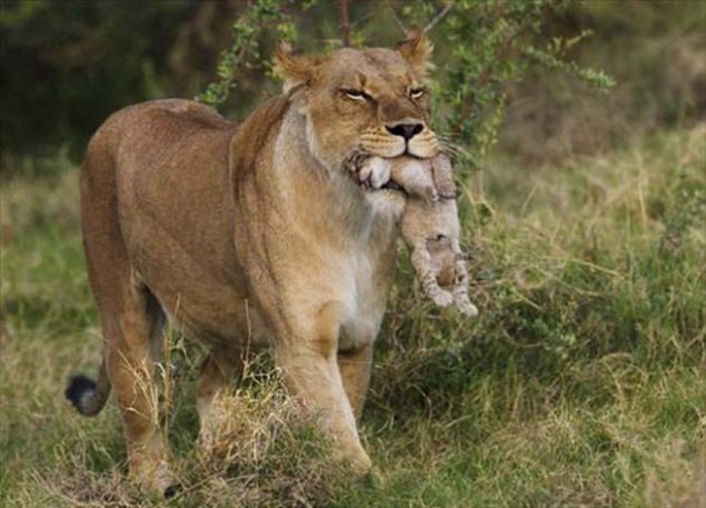 Yavrusunu sorunsuz nehirden karşıya geçiren anne aslan, Yunan fotoğrafçı tarafından böyle görüntülendi..