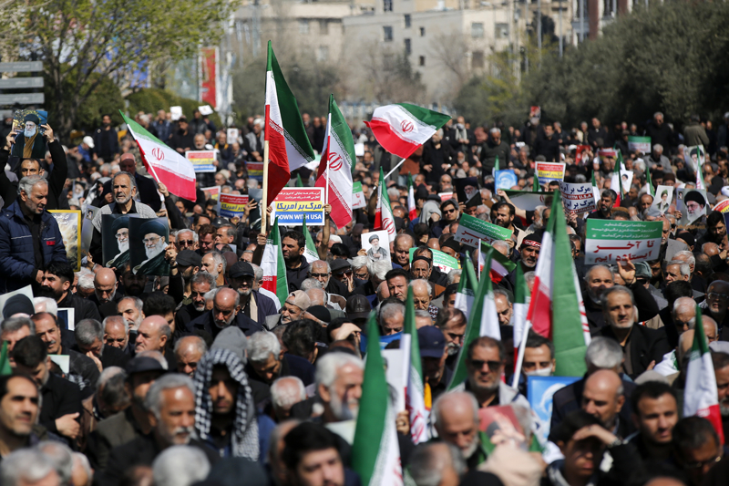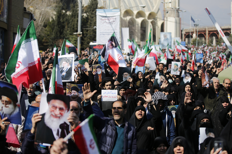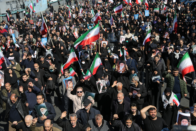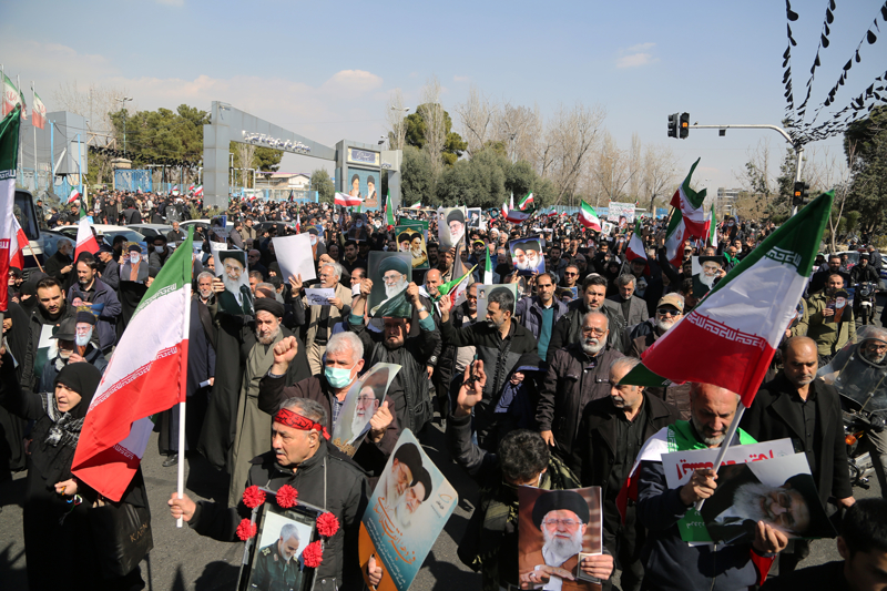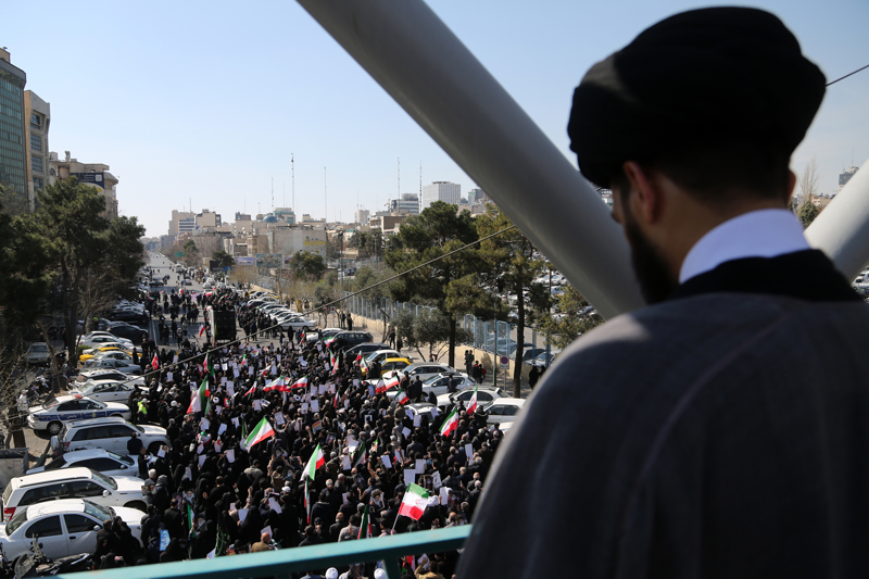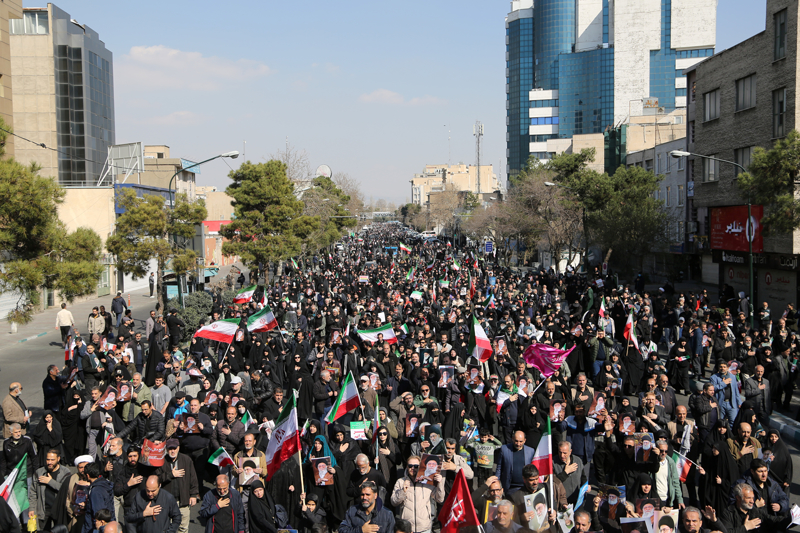 ABD ve İsrail'in İran'a yönelik saldırılarının başladığı 28 Şubattan sonraki ilk cuma namazı, binlerce İranlının katılımıyla başkenti Tahran'daki İmam Humeyni Büyük Musalla Camisi ve çevresinde kılındı. Namazın ardından ABD ve İsrail aleyhine gösteri düzenlendi.